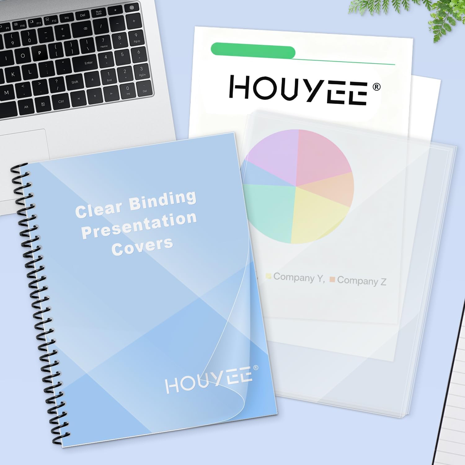 HOUYEE 200 Pack 5 Mil PVC Binding Presentation Covers, Clear Report Covers,8.5x11 Inches,Letter Size