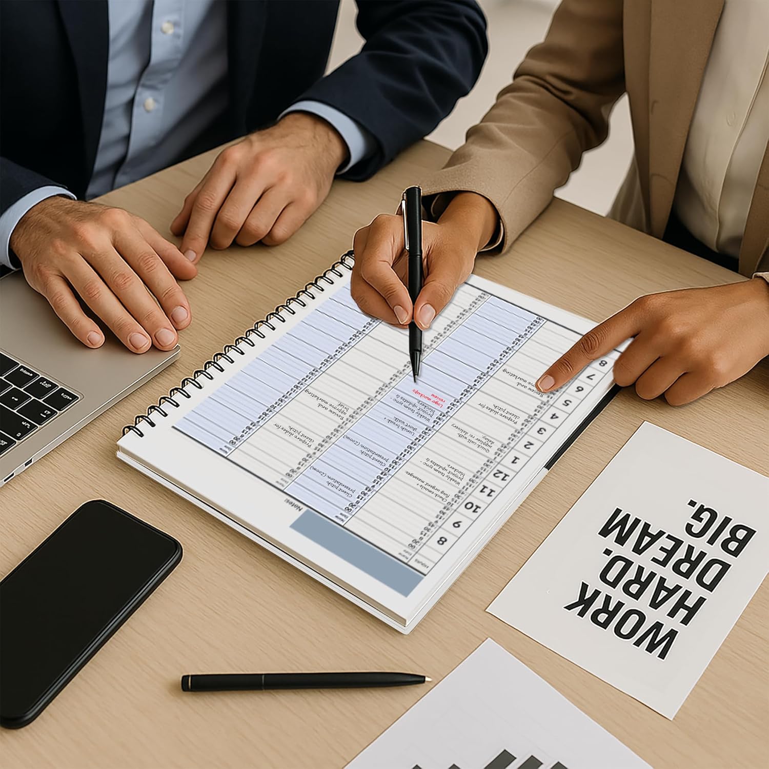 - ā COMPLETE SCHEDULING TOOL: This planner appointment book is designed to help busy professionals, business people, teachers, students, moms, or anyone looking to add some organization in their life. The numbers are bold and big, the hourly and 15 minutes slots are large, and extra tools like yearly calendars, notes pages, a pocket in the back, holidays list, bookmarks, and pen holders have been added to make it a complete scheduling kit.