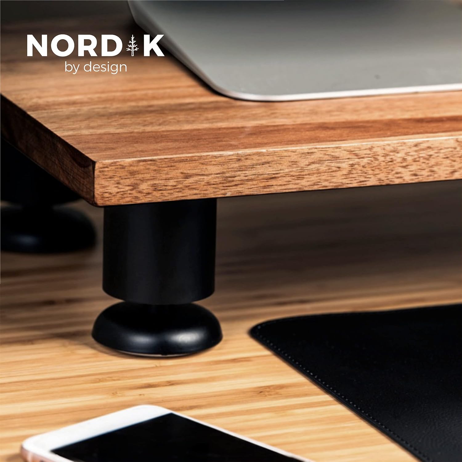 Nordik Large Dual Monitor Riser for 2 - Premium Handmade Hardwood Acacia Computer - Laptop TV Stand with Storage for Desk Accessories - Organizer Television