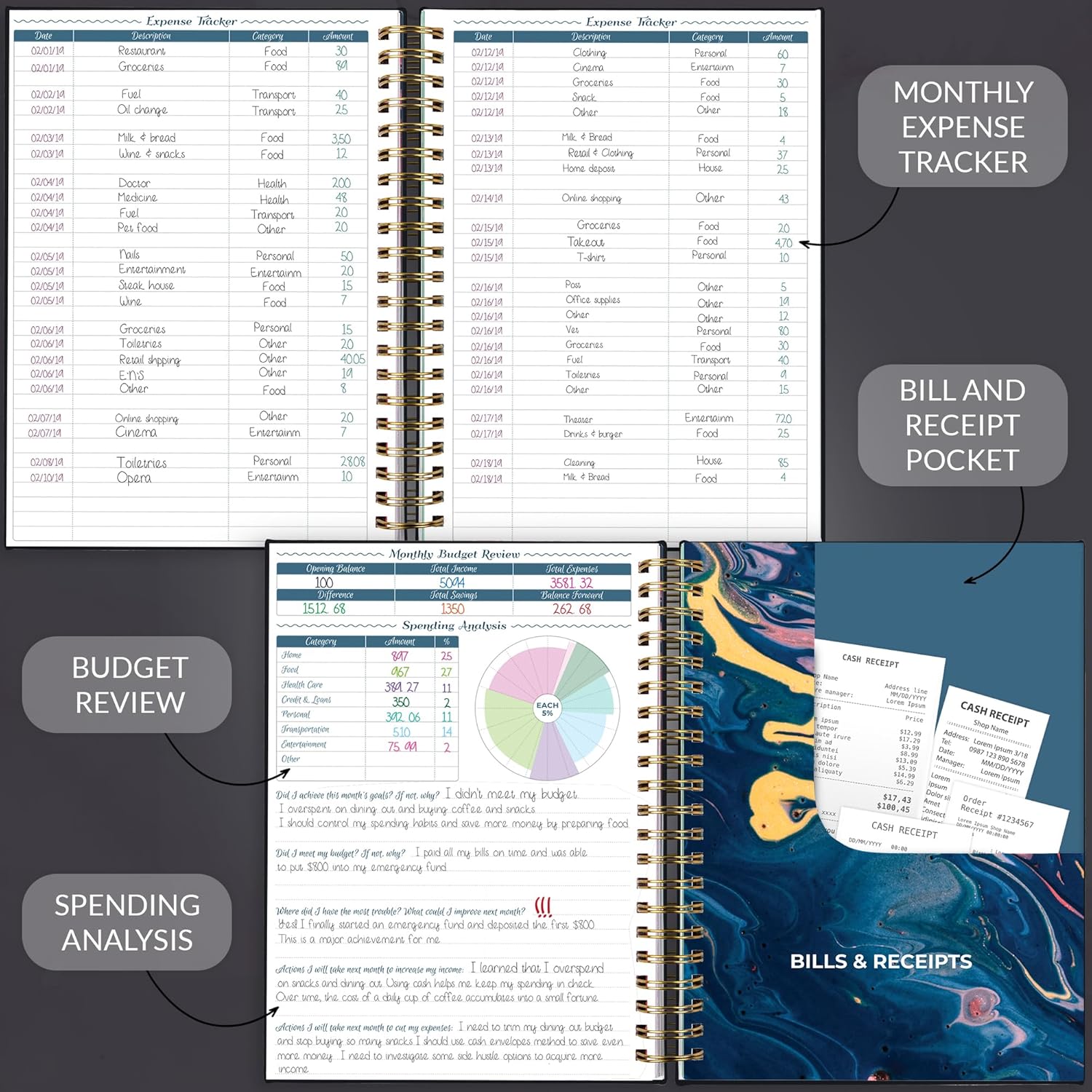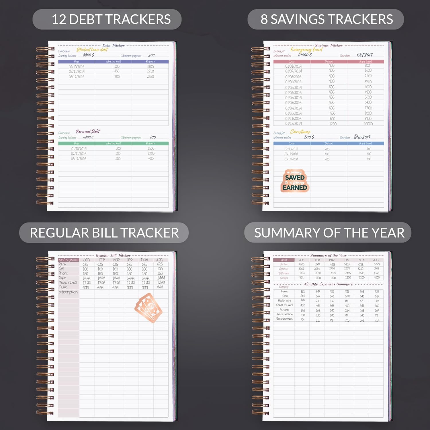 - ALL YOU MAY NEED FOR BUDGETING: This budget planner organizer helps you set financial goals, develop a strategy and incorporate it into your monthly budget. At the back, you will find 4 savings tracker, 6 debt tracker, holiday budget, and a bill tracker.