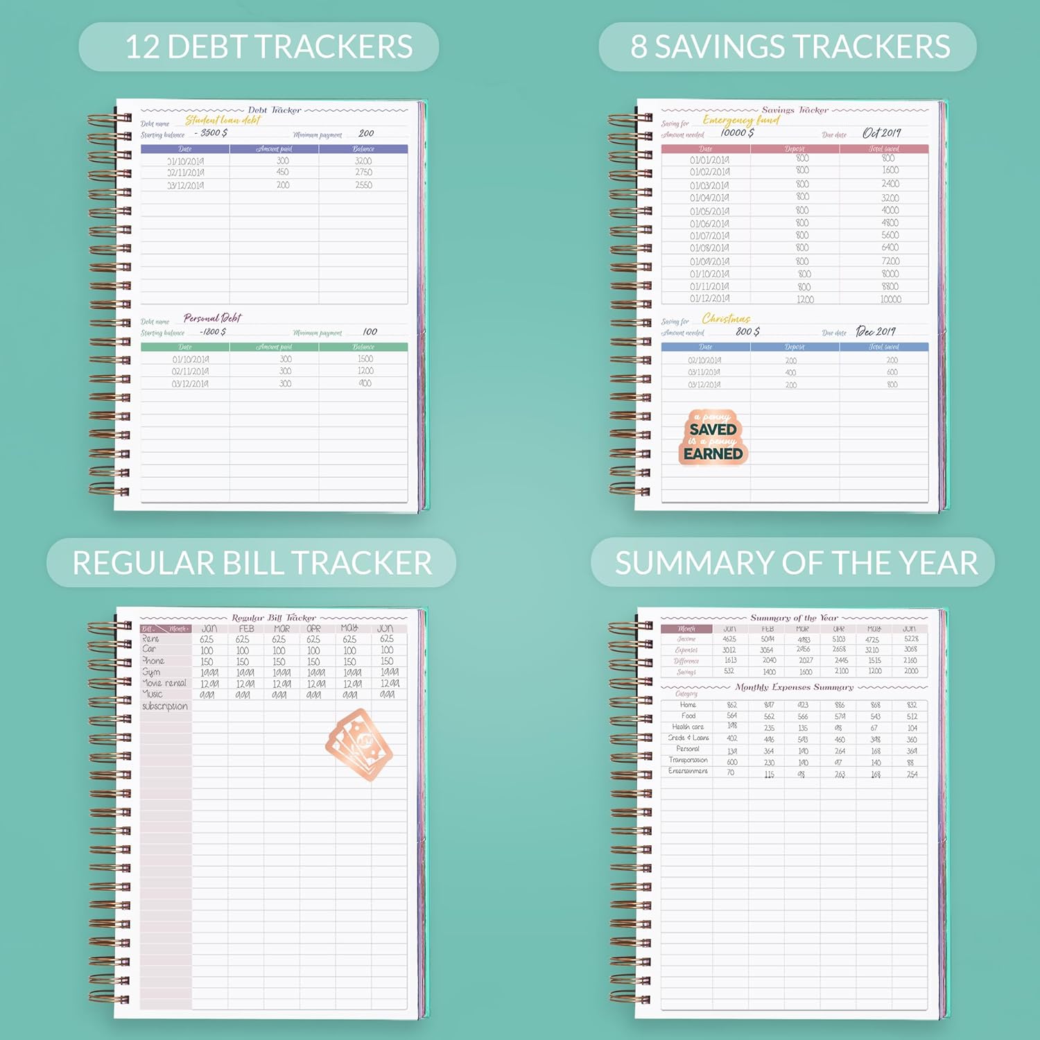 - ALL YOU MAY NEED FOR BUDGETING: This budget planner organizer helps you set financial goals, develop a strategy and incorporate it into your monthly budget. At the back, you will find 4 savings tracker, 6 debt tracker, holiday budget, and a bill tracker.