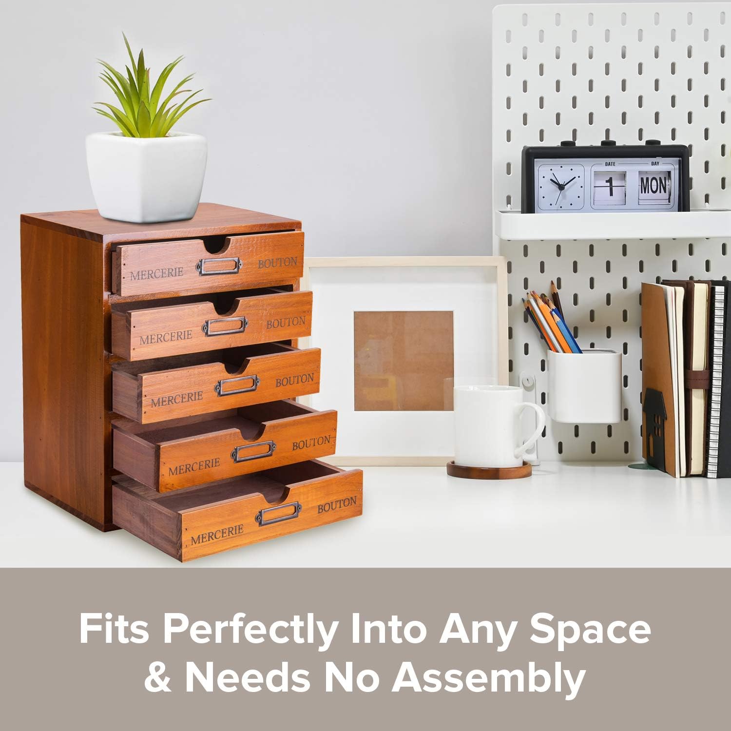 Vintage 5-Drawer Wooden Desk Organizer - Craft Storage Drawers - Rustic Shelf Drawer - Ideal Home Office Organizers and Accessories - Embroidery Floss - Apothecary Cabinet, Art Storage I Stackable