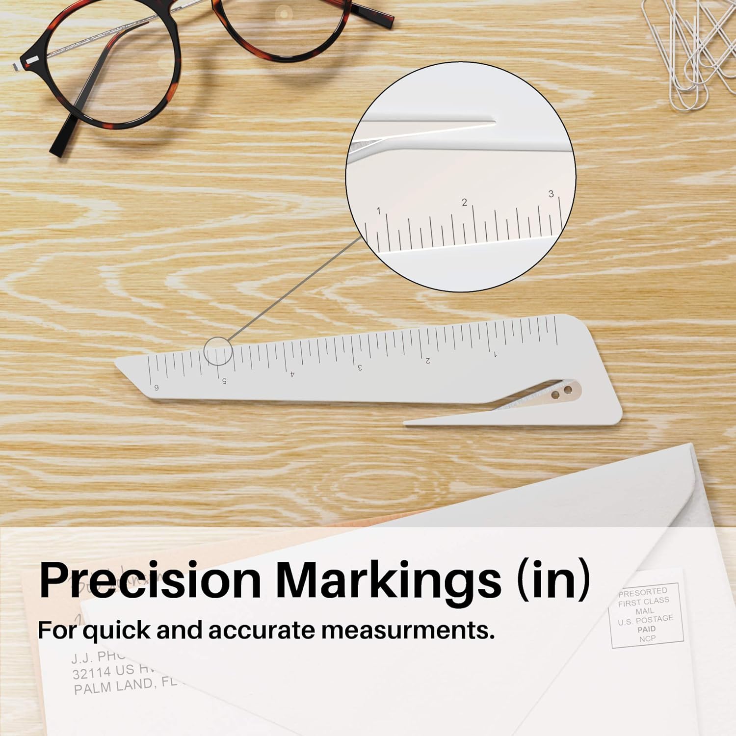 - Safety: Our blade is sharp enough to cut through paper and may cause harm if handled improperly. Please keep the small ruler/envelope slitter out of the reach of young children and handle with care.