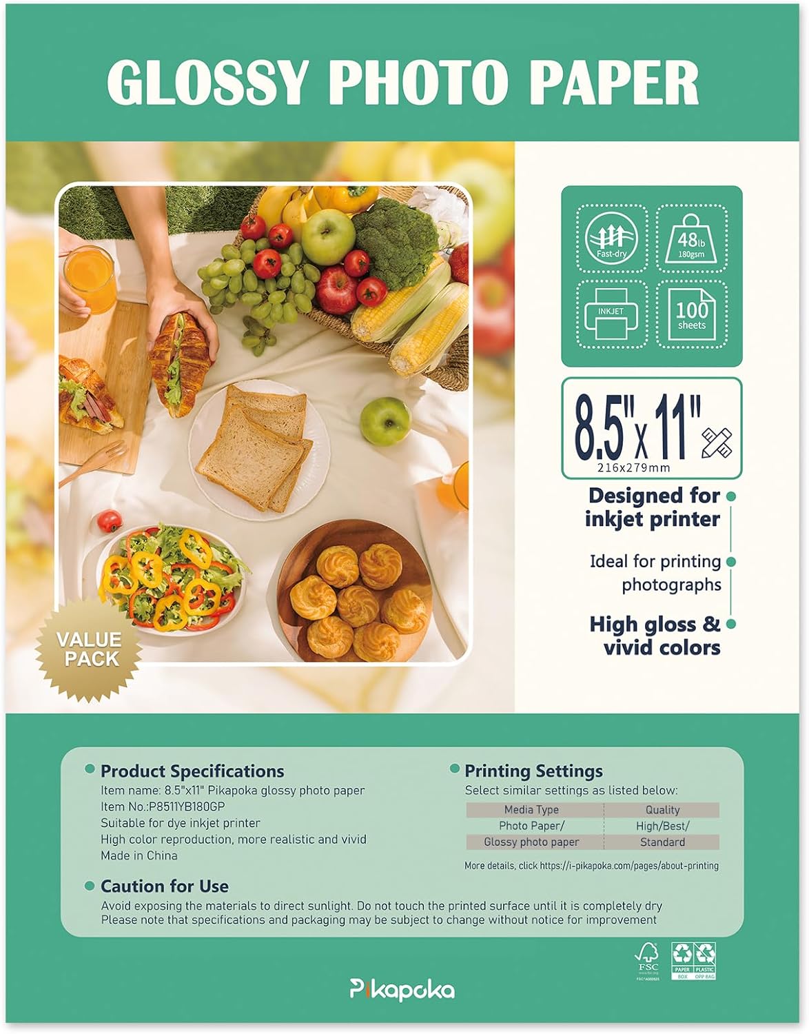- Pikapoka bulk advanced glossy photo paper 8.5 x 11, 100 Pack, 48 lb