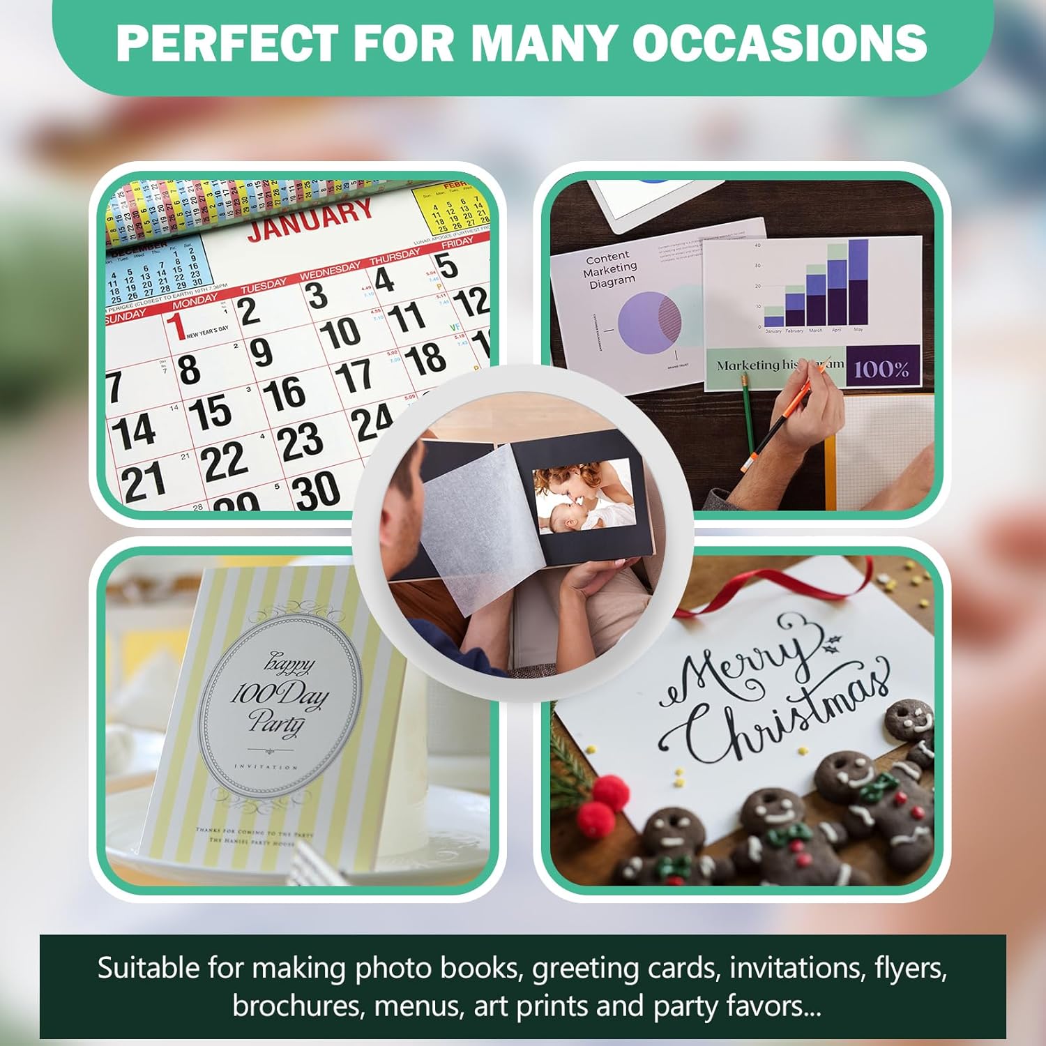 - Cost effective choice for photo album, office, home decor, invitations, brochure, cardstock, artworks, DIY party decorations, calendar, etc