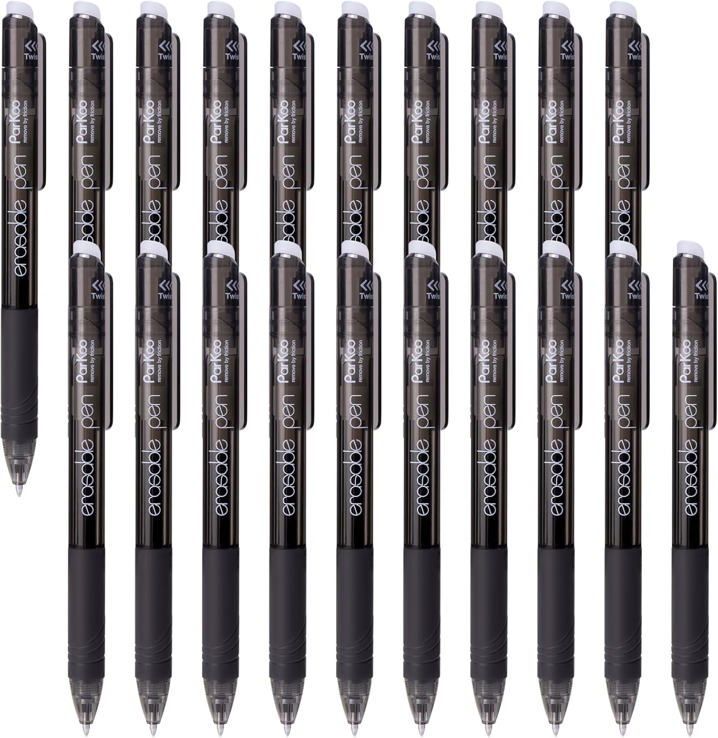 ParKoo Retractable Erasable Gel Pens, 20 Black Twist Pens, Fine Point 0.7 mm, Make Mistakes Disappear, Smooth Writing with Comfortable Grip for Journaling Drawing, School Supplies