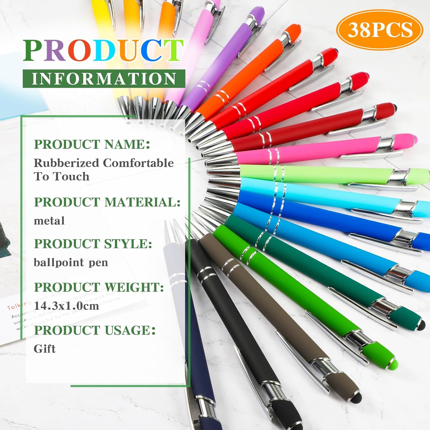 - Beautiful pens: our rubberized ballpoint pen have the bright color; Rubberized barrel gives a nice-touch grip for extra comfort; This eye-catching metal pen will be a favorite as a present or at parties, conventions, trade shows, corporate events and so much more