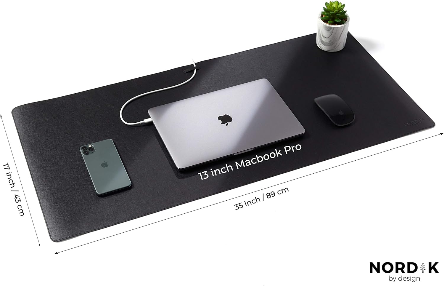 Nordik Cork Leather Desk Mat Cable Organizer (Pebble Black 35 X 17 inch) Premium Extended Mouse Mat for Home Office Accessories - Non-Slip Vegan Leather Desk Pad Protector & Desk Blotter Pad