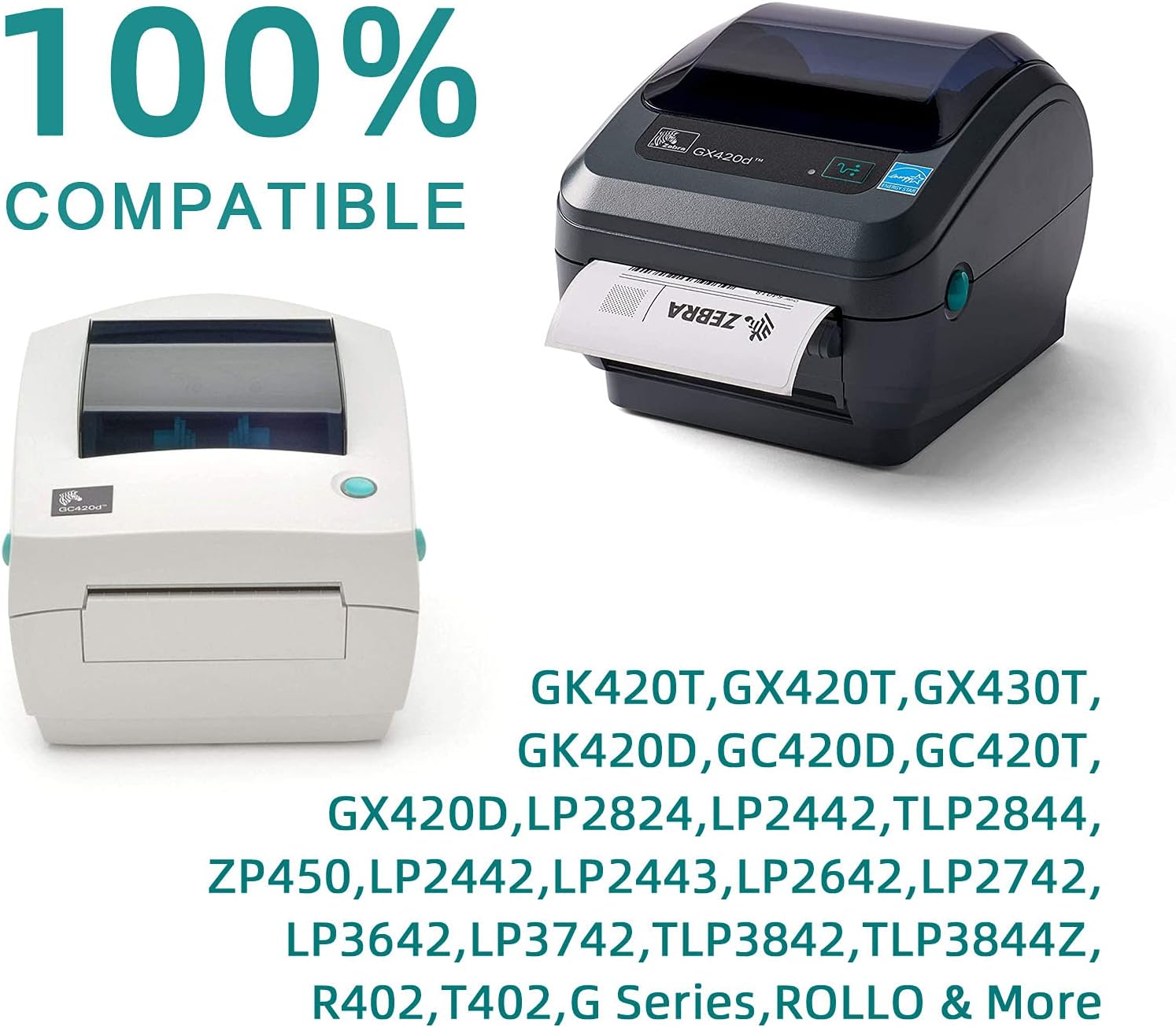 - [Compatible] with Zebra Label Printers: GC420D, GC420T, GK420D, GK420T, GX420D, GX420T, GX430T, LP 2824, LP2844, LP2442, LP2443, LP2642, LP2742, TLP2844, ZP450, ZD500, ZD500R, ZP500, ZP505. Also compatible with Rollo, Eltron, Neatoscan and Intermec, Datamax, Fargo.
