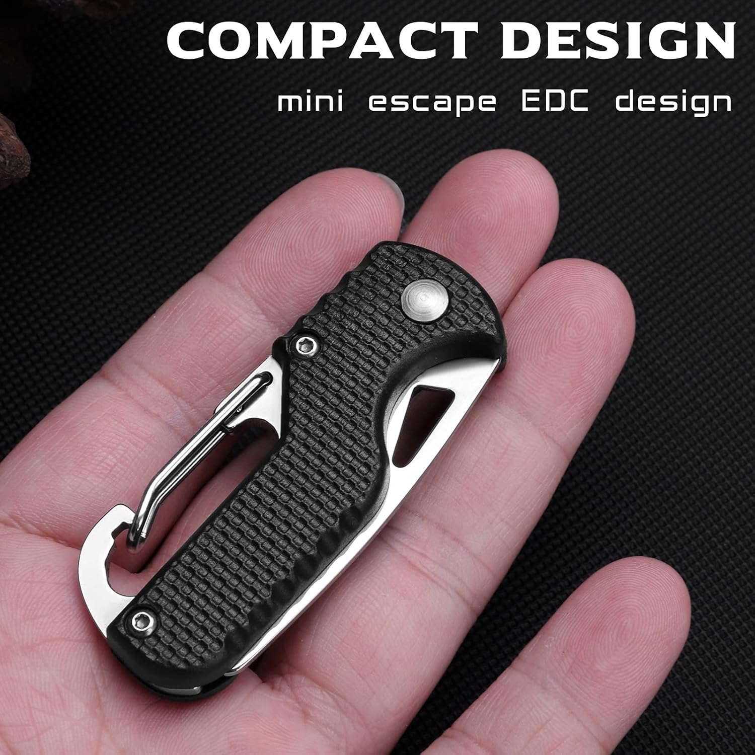 - 【SAFETY & USEFUL】 Essential tool with safety lock to handle the utility tasks in daily life for cutting zip ties, strap, seatbelt, ropes, papers, also unpacking boxes and envelops. Multitool keychain knife works well in any condition and angle for cutting, with good edge retention and high corrosion resistance.