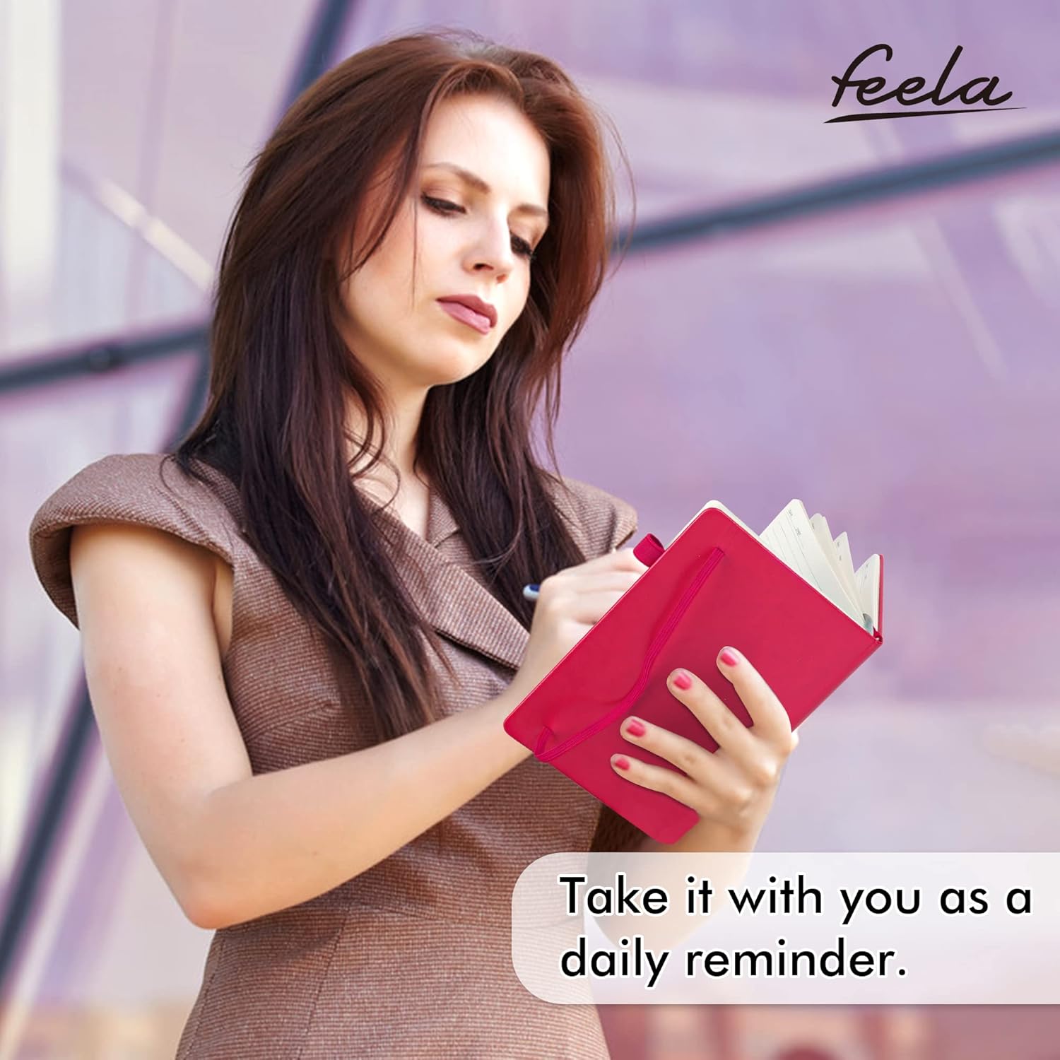 feela 5 Pack Notebooks Journals Bulk, Hardcover Notebook Classic Ruled Lined Journals with Pen Holder for Women Girls School Business Supplies, with 5 Black Pens, 120 GSM, 5.1”x8.3”, A5, Berry
