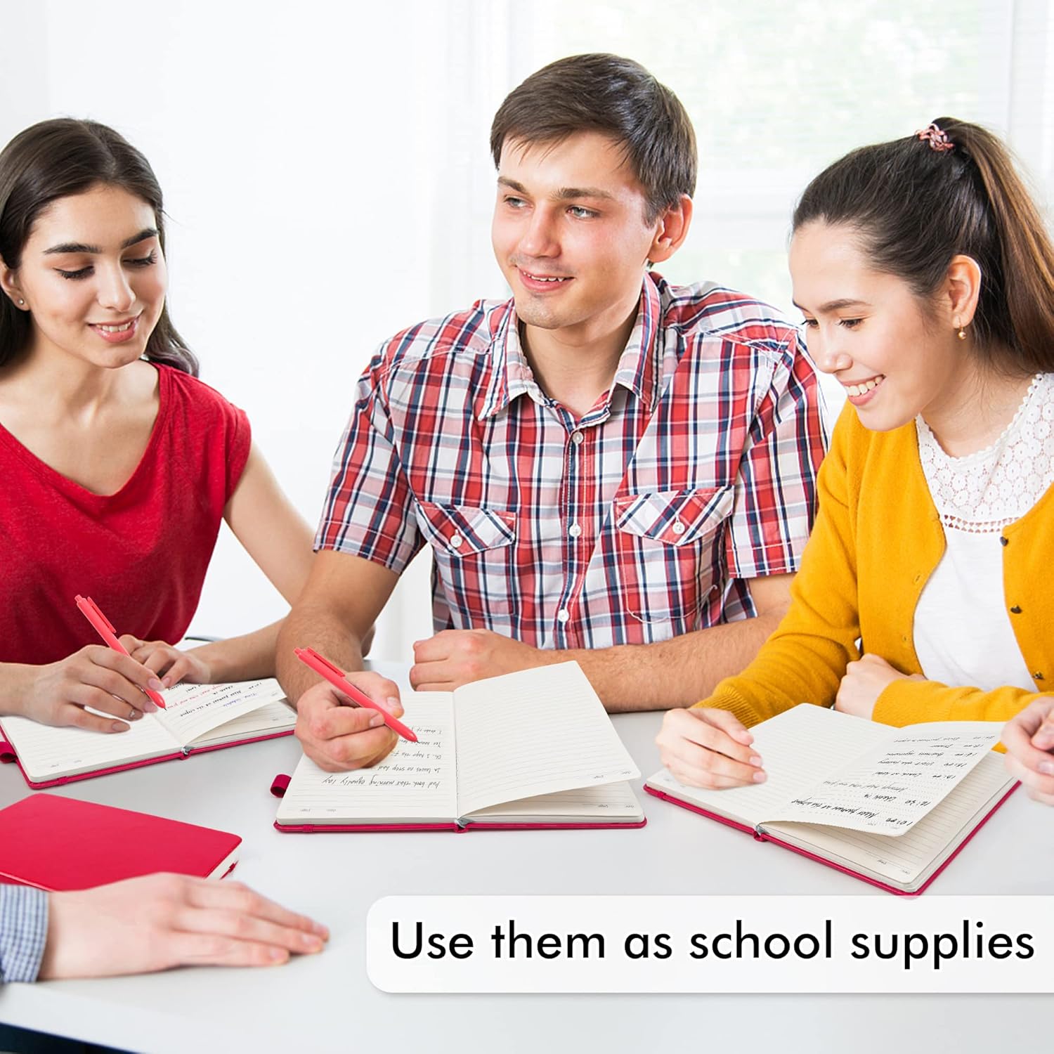 - Feela 5 Pack Classic Ruled Notebooks contains 5 classic berry ruled sturdy cover notebooks and 5 Black Retractable Pens. Each of the notebooks measures 8.3” x 5.1”, which is perfect to carry and easily held by young girls and boys. These black cute pens are customized to be placed in the pen holder, which is pretty convenient.