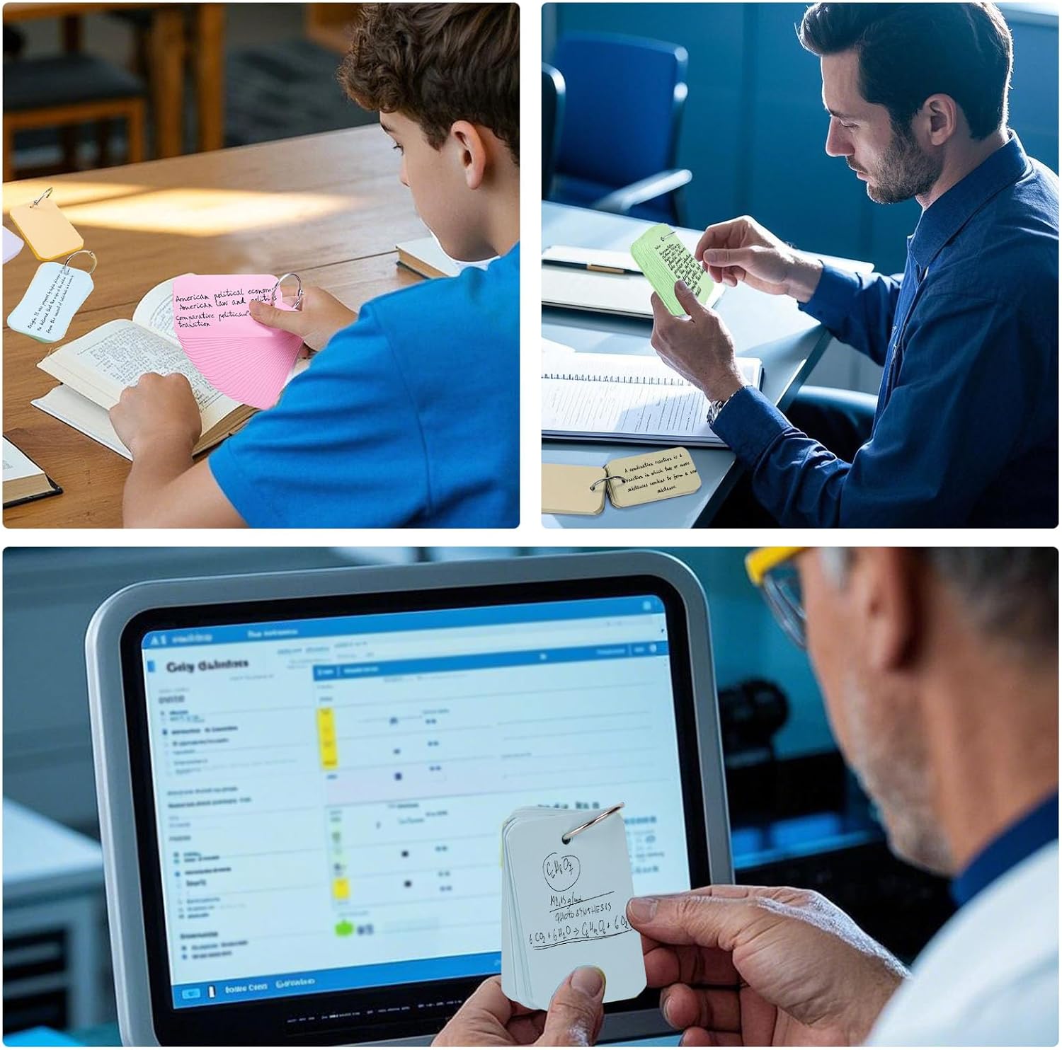 - Super Value Pack β Includes 1,500 blank index cards with rings (2.2β x 3.5β) in 7 colors: white (300 pcs), and blue, green, purple, yellow, orange, red (200 pcs each), plus 8 durable metal rings. Perfect for students, teachers, and training institutions