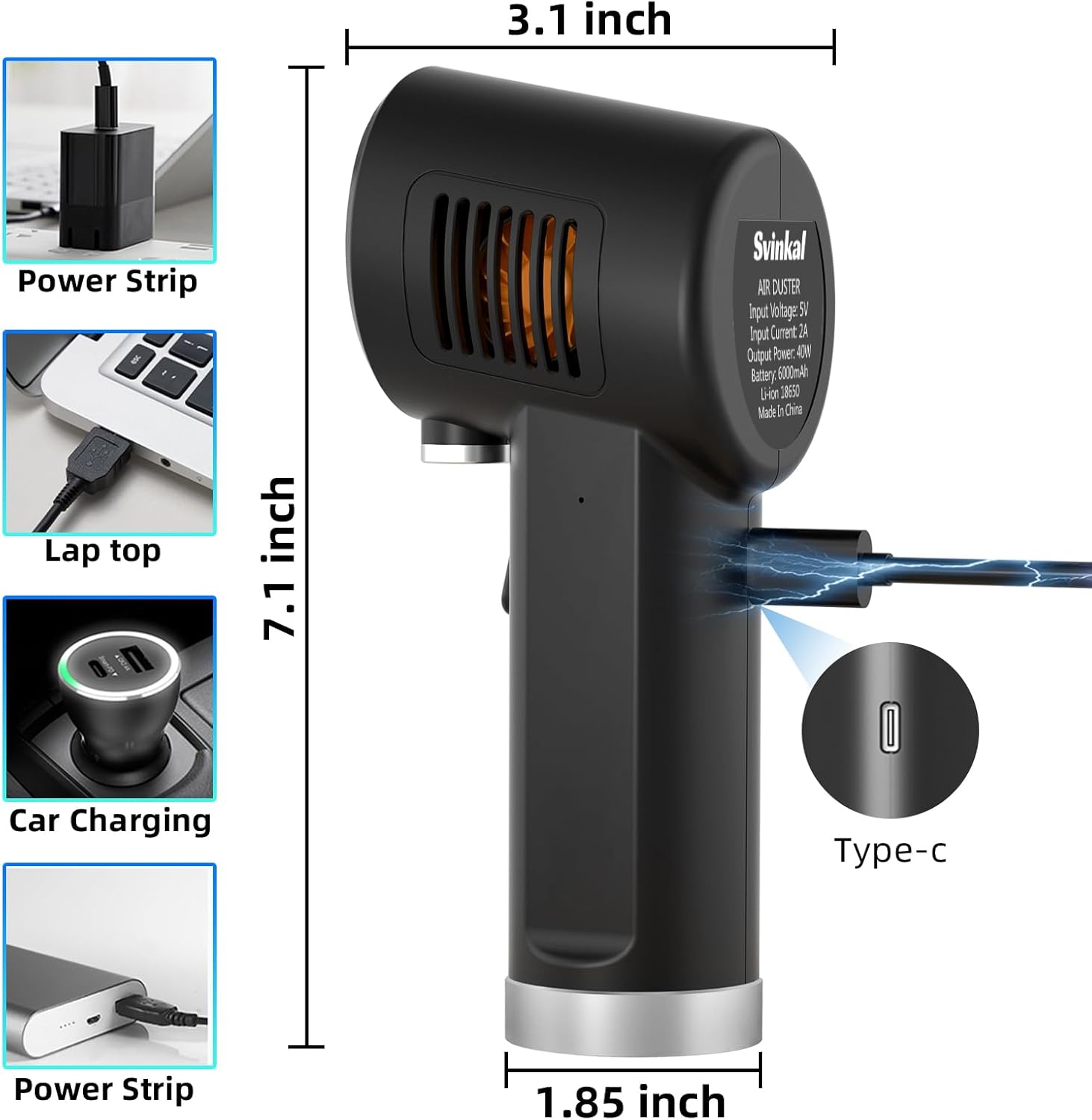 Air Duster, Handheld Cordless Air Duster, Air Blower Rechargeable, Electric Compressed air Gun Battery Operation, for Cleaning Computer Keyboard Camera Lego Toys.