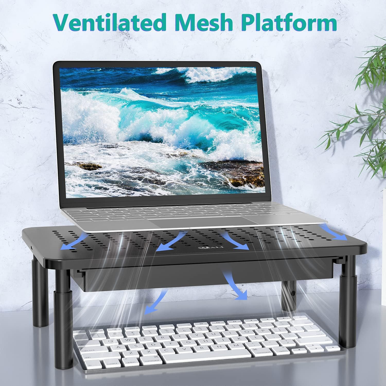 - Ventilated: This riser for computer monitor with large sturdy platform with vented holes, this stand will prevent overheating and keep the device cool