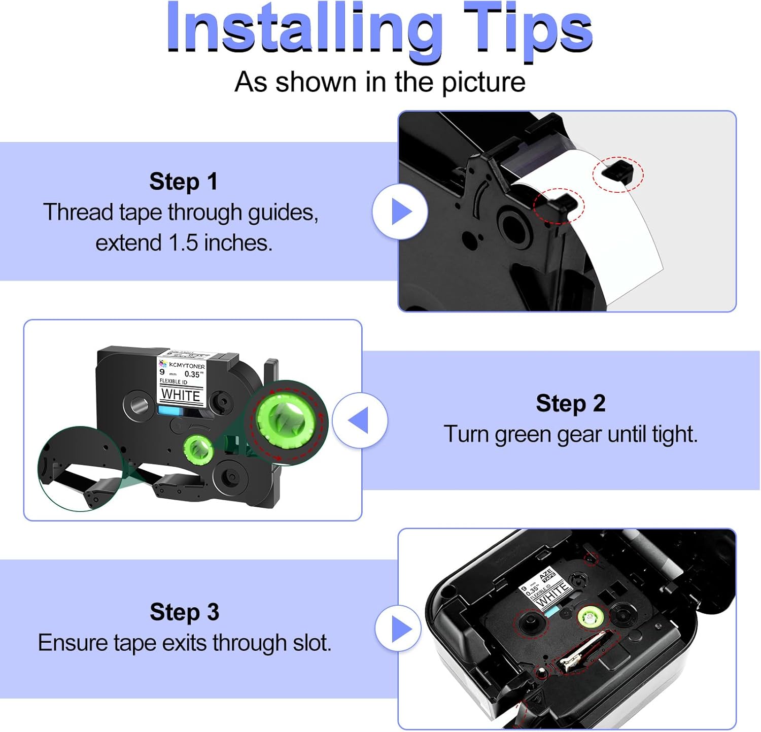 - Package Included: 2 pack KCMYTONER compatible for ptouch TZe-FX221 TZ-FX221 TZe221 TZe-221 TZ-221 TZ221 flexible-id laminated label maker tape for cable/wires wrapping; color: black text on white tape; width: 9mm (0.35 inch); length: 26.2 feet (8m).
