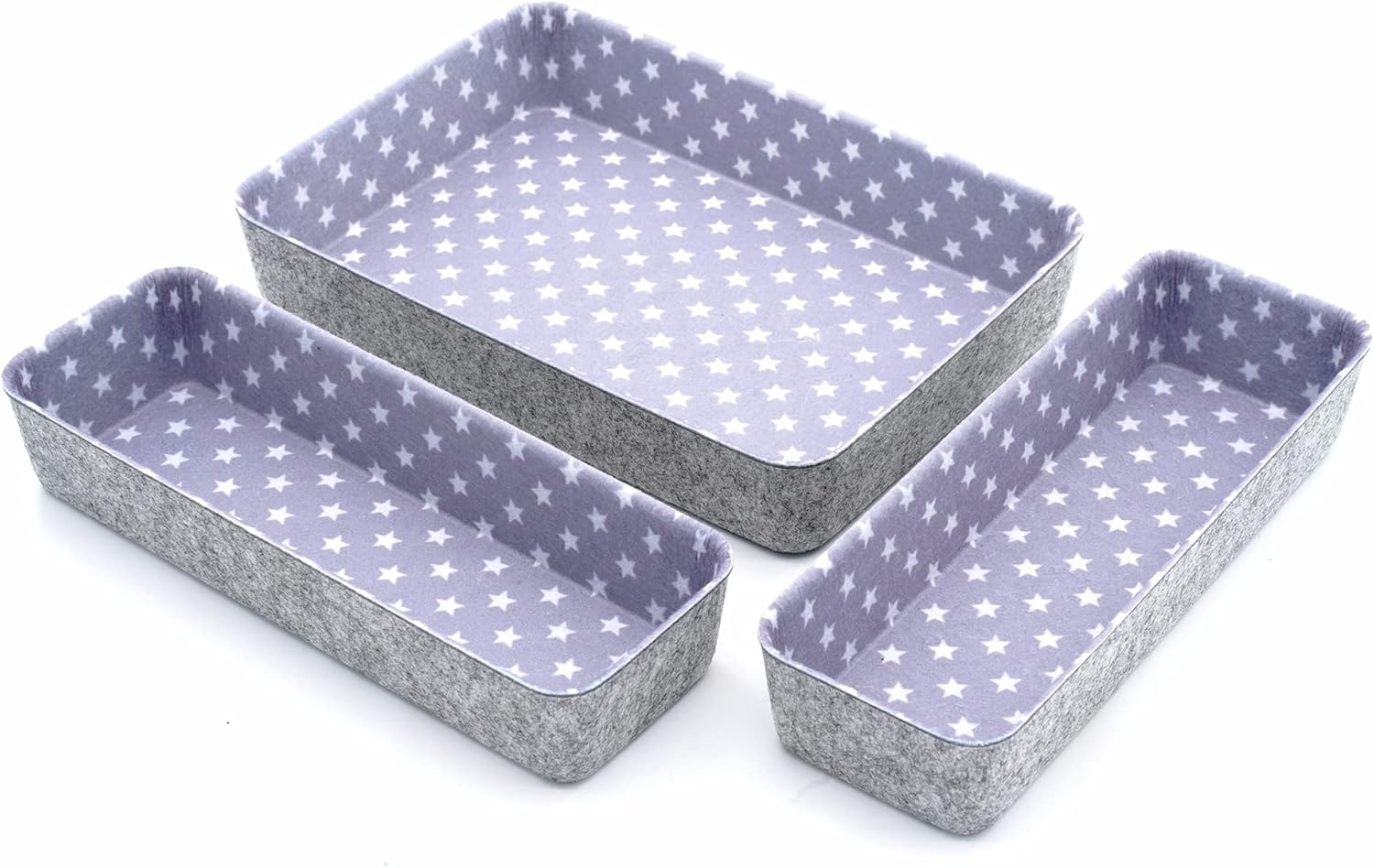- Package content: pack of 3 drawer organizers , 2 tones pop color contrasts ( inner Star pattern ,outer grey color ) .Economic affordable for home office storage and organization. Trendy & modern zigzag elements show a taste of cozy room interior dΓ©cor.