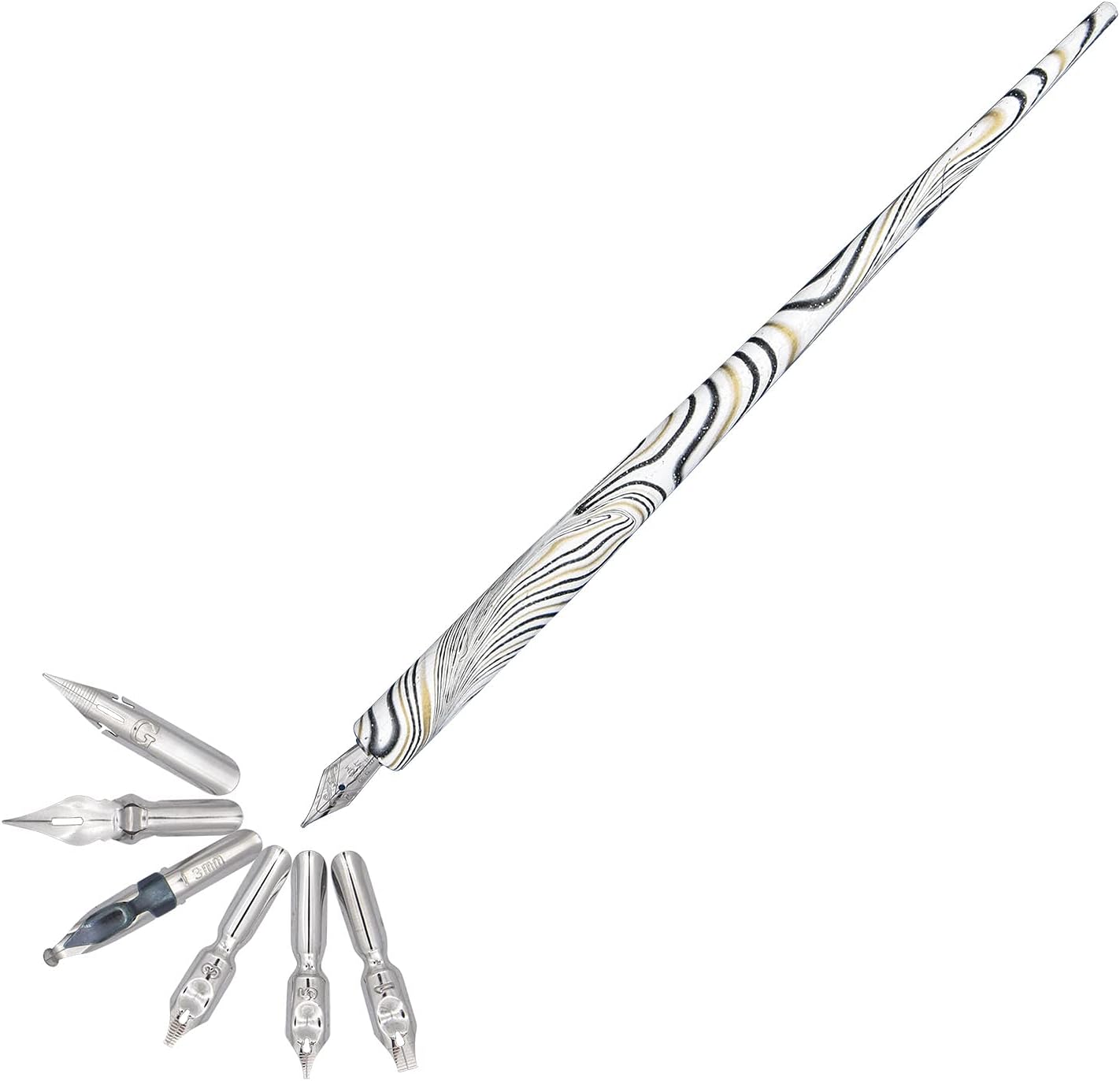 Gullor Wooden Dip Pen Calligraphy Set with Black Ink & 6 Nibs for Beginners, Kids, Writing, Signatures and Drawing, White