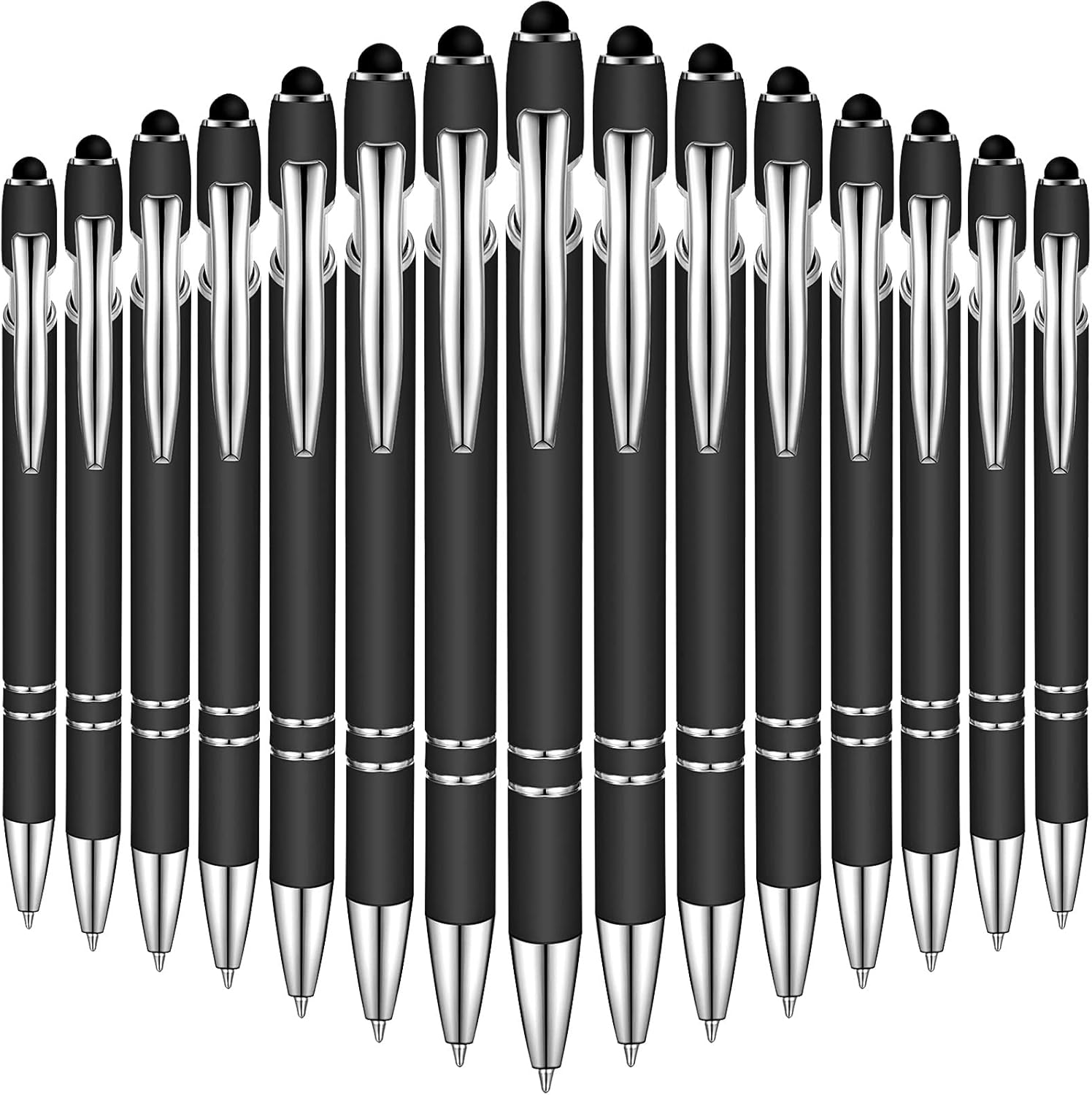 Zonon 38 Pieces Rubberized Ballpoint Pen with Stylus Tip Stylish Metal Pen Capacitive Styli with Soft Rubberized Grip, Black Ink for Most Devices(Black)
