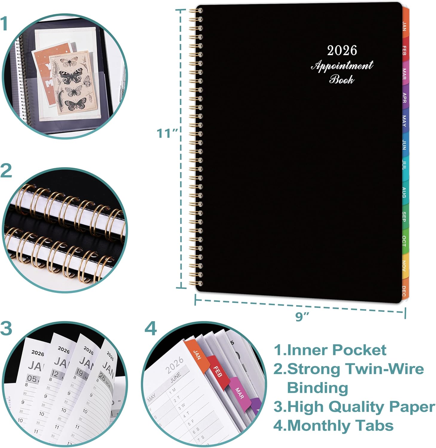 2026 Appointment Book - 2026 Planner, January 2026 - December 2026, 9" x 11", 2026 Daily Hourly Planner, Half Hour (30 Mins) Interval, Colorful Monthly Tabs, Lay-Flat, Inner Pocket