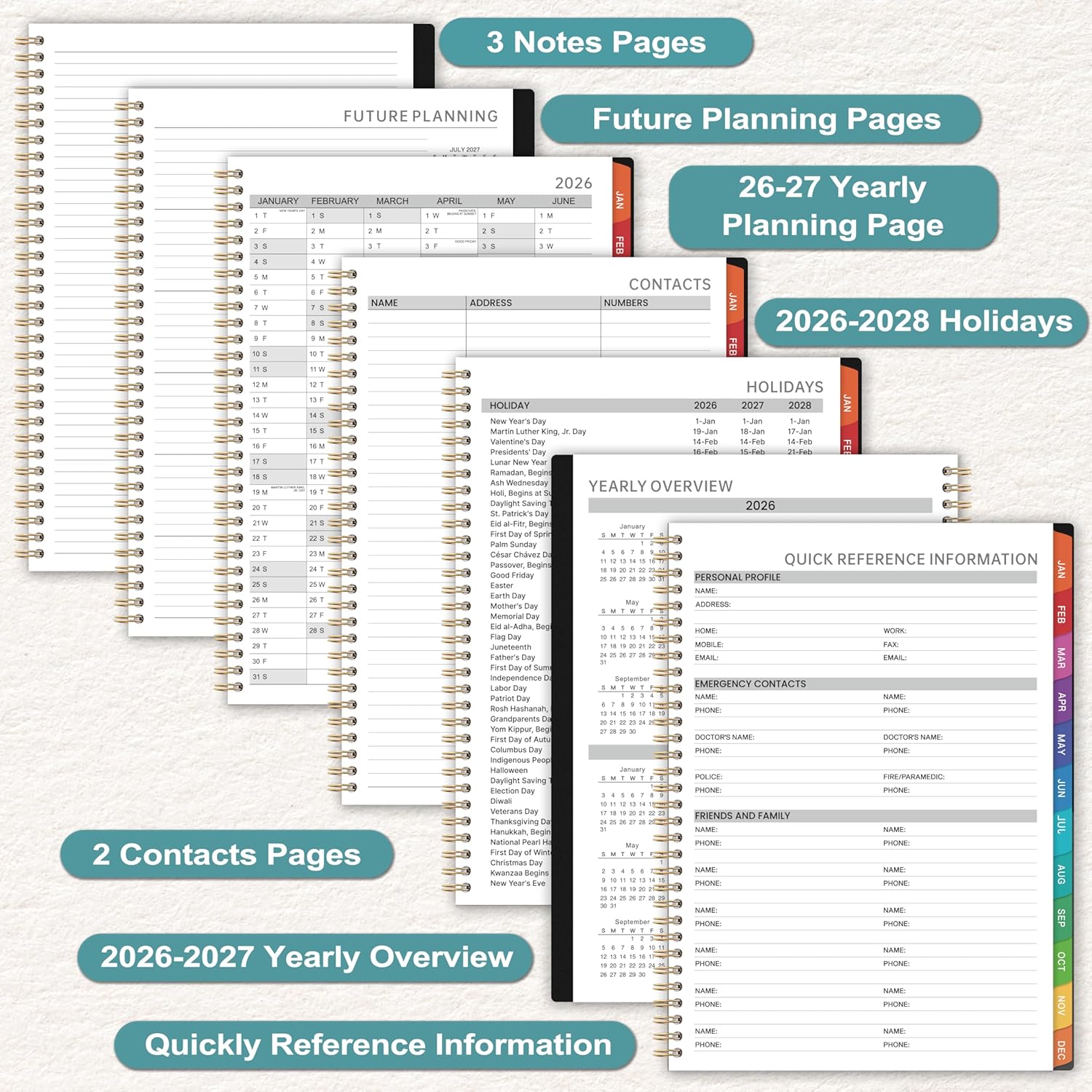 - ♚FEATURES - 9" x 11" Planning Pages | Reference Information | Yearly Overview | Holidays | 2026-2027 Calendar | Strong Twin-Wire Binding | Julian Date | Premium Paper | Elegant Design | Colorful Monthly Tabs | Two-side Pocket