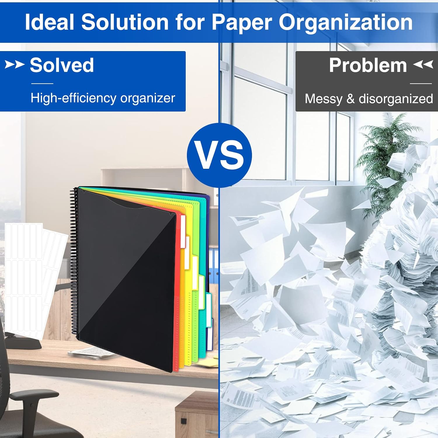 - High-efficiency Paper Organizer: 12 pockets, 6 dividers with 1/6-cut assorted tabs in bright colors, and 36 blank viewable sticky labels. Super handy for quick referencing. Perfect for categorizing and organizing projects, homework, assignments, or other important documents.