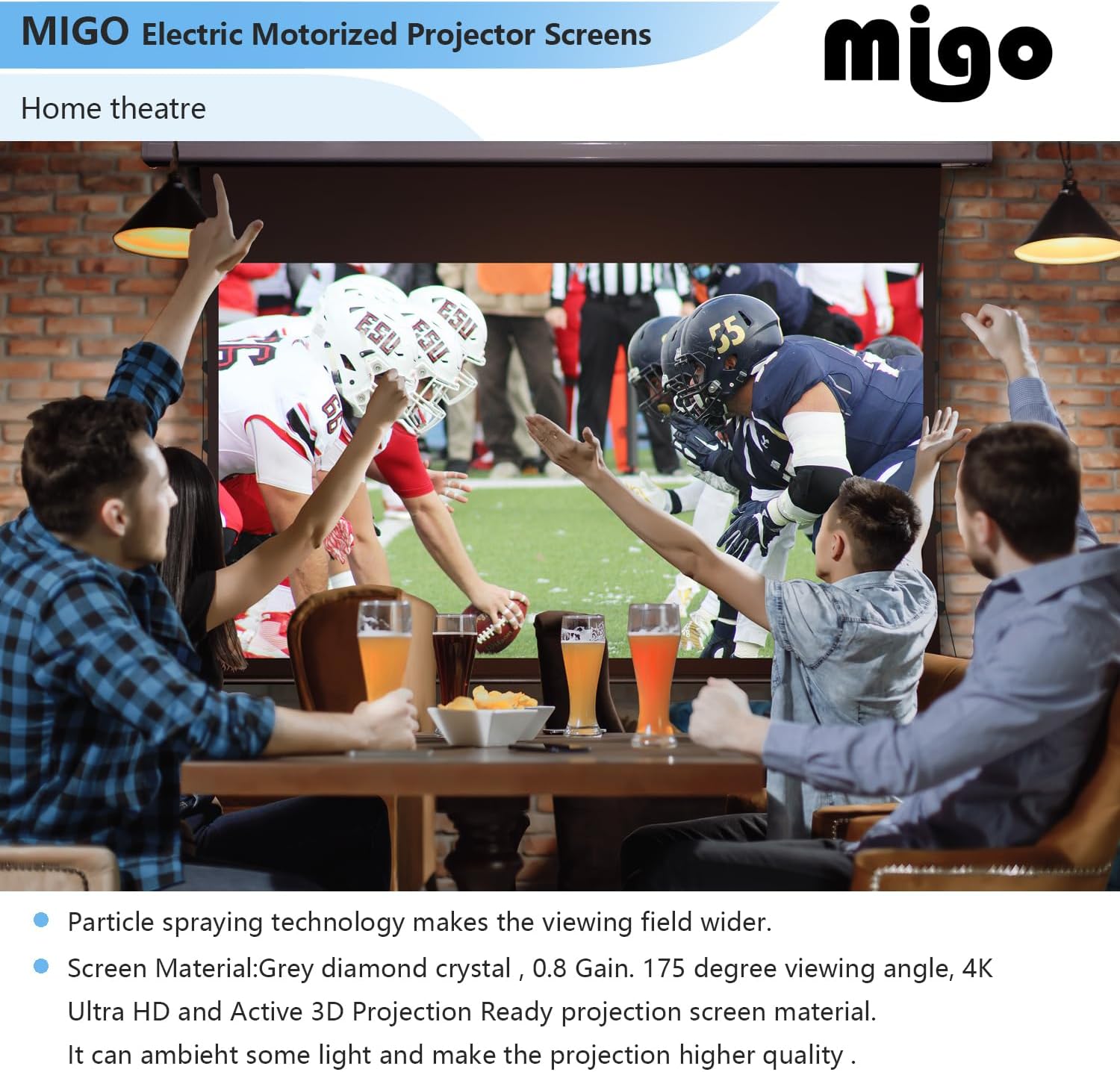 - [Lifetime Support & FCC Certification] MIGO electric projector screen offers lifetime email support. FCC certified for electromagnetic safety (ID: HTT202207222F), ensuring reliable quality and safe use of the automatic projector screen for home theater