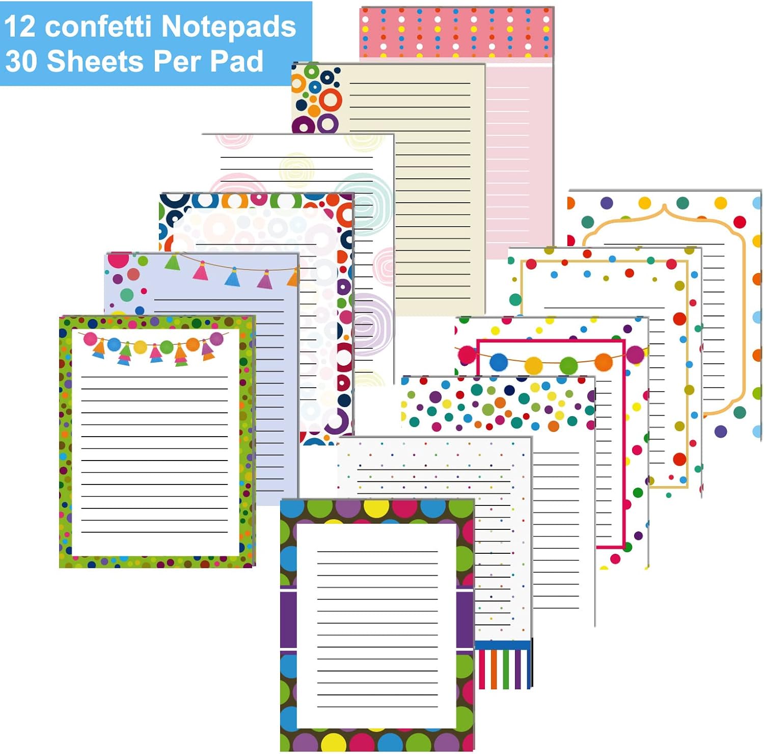 12 Pcs Confetti Small Note Pads Back to School Cute Lined Stick Pad 3 x 4 Inch Decorative Memo Colorful Teacher Notepad Shopping List Appreciation Gift for Office Student, Each with 30 Sheet