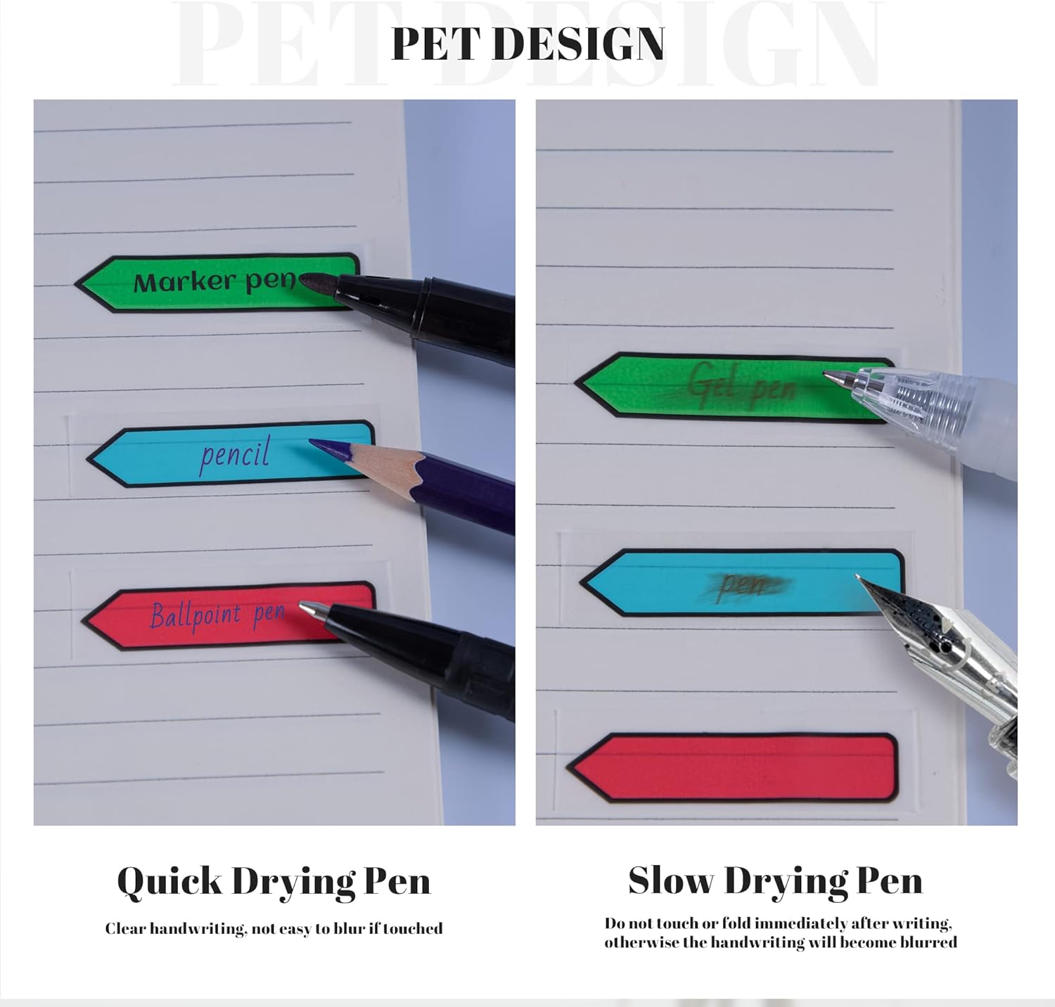 - [MATERIAL] The arrow flag sticky tabs are made of Matte fabric, BOPP material, and a unique adhesive. It is waterproof, not easy to tear, and durable, with solid ink absorption for writing.