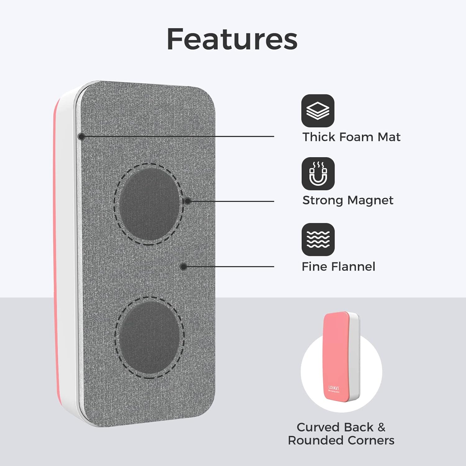 loukin 2 Pack Magnetic Dry Erase Eraser, Whiteboard Eraser, Glass Board Remover, 3.4 fl oz Whiteboard Cleaner * 2 Included, for Classroom, Home and Office Use (Pink)