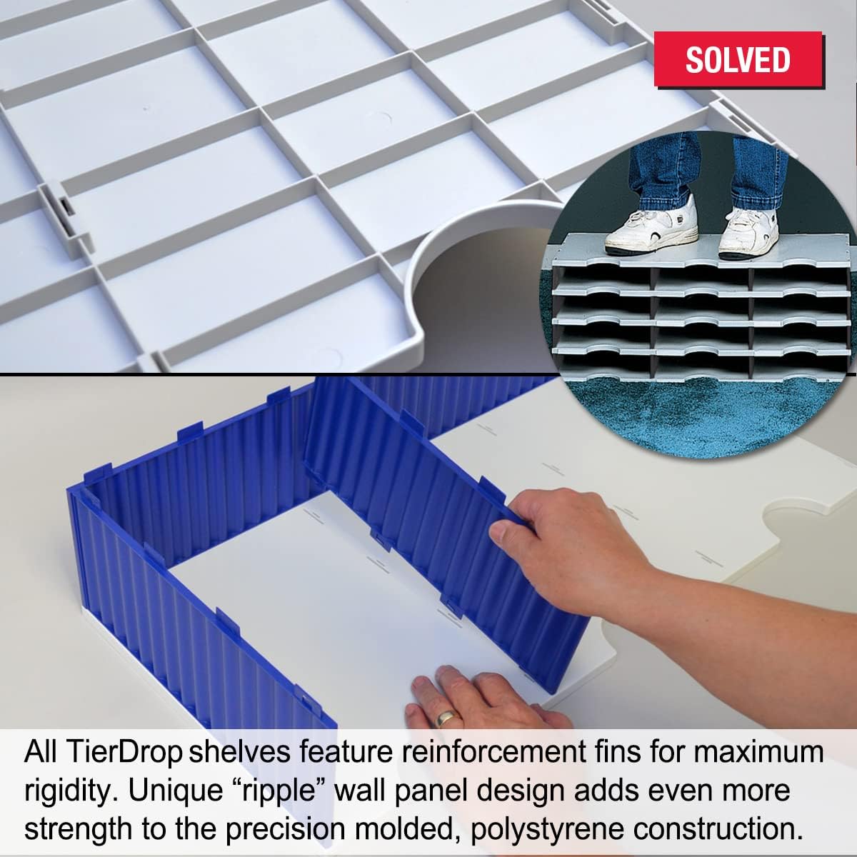 - THE STRENGTH OF STEEL AT A FRACTION OF THE COST - Precision molded in Switzerland, each TierDrop platform features underside reinforcement fins for extra strength and superior rigidity. The unique rippled side and back wall design combine with the platforms to create a literature organizer that will stand the test of time. No dented or rusted steel and no sagging corrugated cardboard.