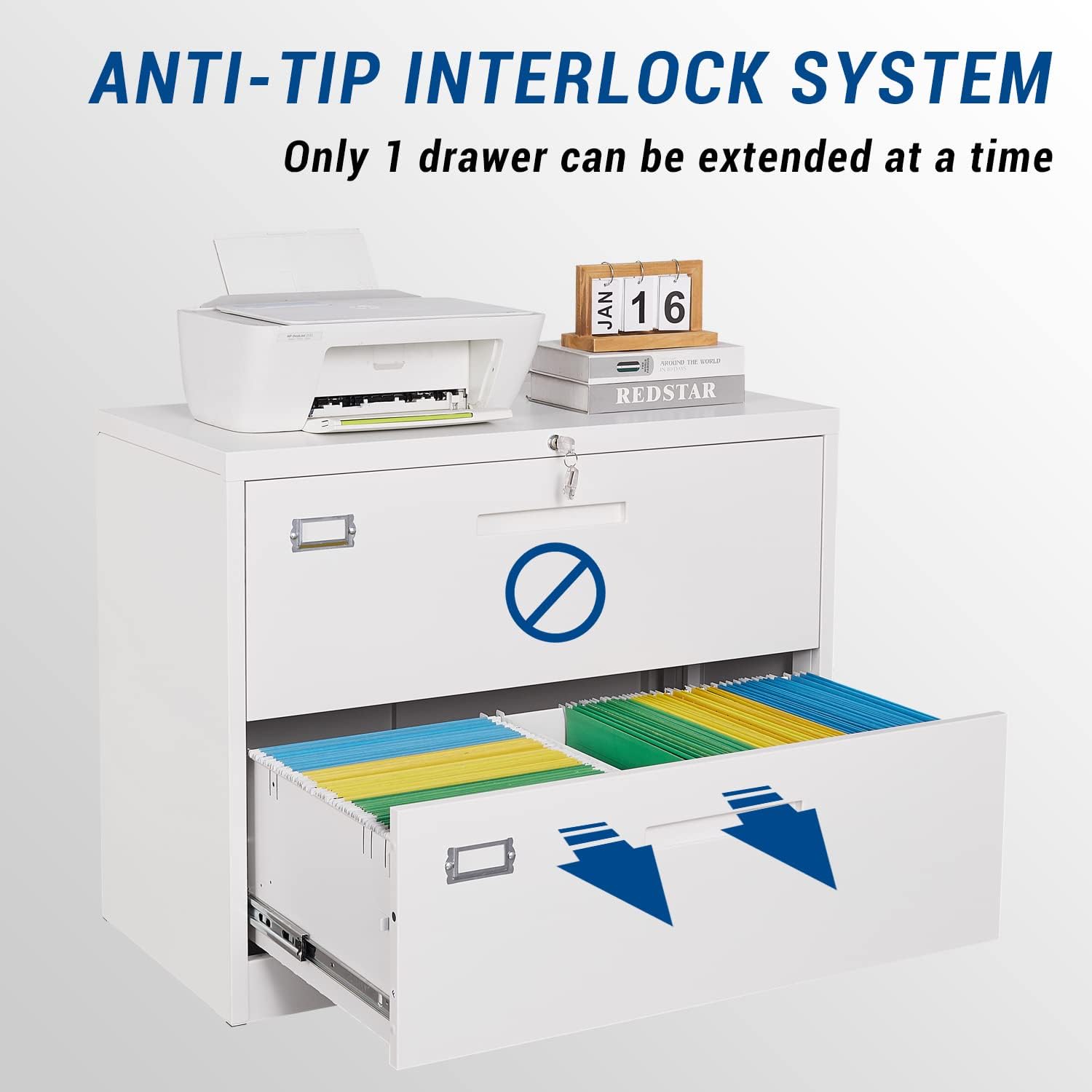 - LOCKABLE CABINET - With the meta lock and keys in the file cabinet, you can locked this cabinet easily. And there have two keys, one of them can be used as a spare key.