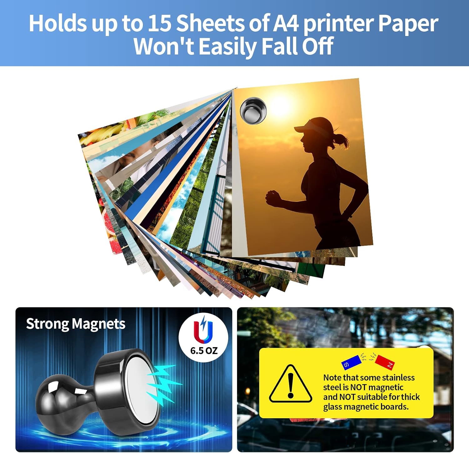 - 【Strong Fridge Magnets】Do not be fooled by these magnets fridge, They can hold up to 15 sheets of A4 printer paper at once with just a tiny magnet. Even possible to use them in the kitchen to hold cooking tools that weigh no more than 6.5 OZ and the cooking tools won't easily fall off.