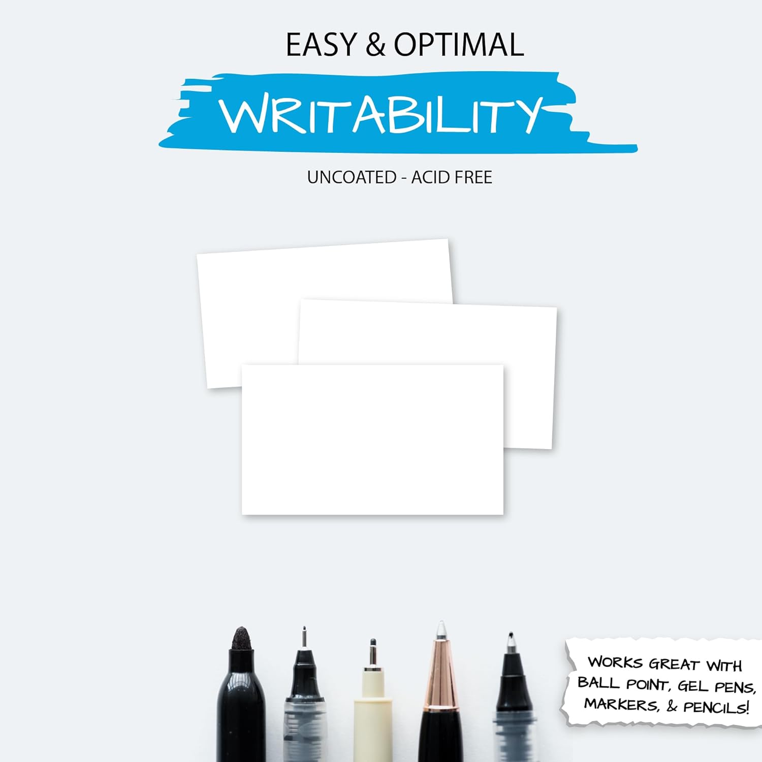 - Inspired by Creatives - Follow in the footsteps of renowned authors and researchers who prefer the tactile experience of our white cardstock paper for brainstorming and organizing ideas. White flash cards promote effective studying and are the gold-standard study tool