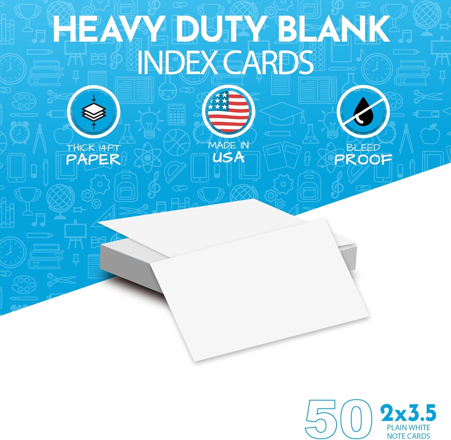 Home Advantage 3.5x5 Blank Index Cards - 50 Pack of Heavy Duty Bleed Proof Note Cards & Flashcards