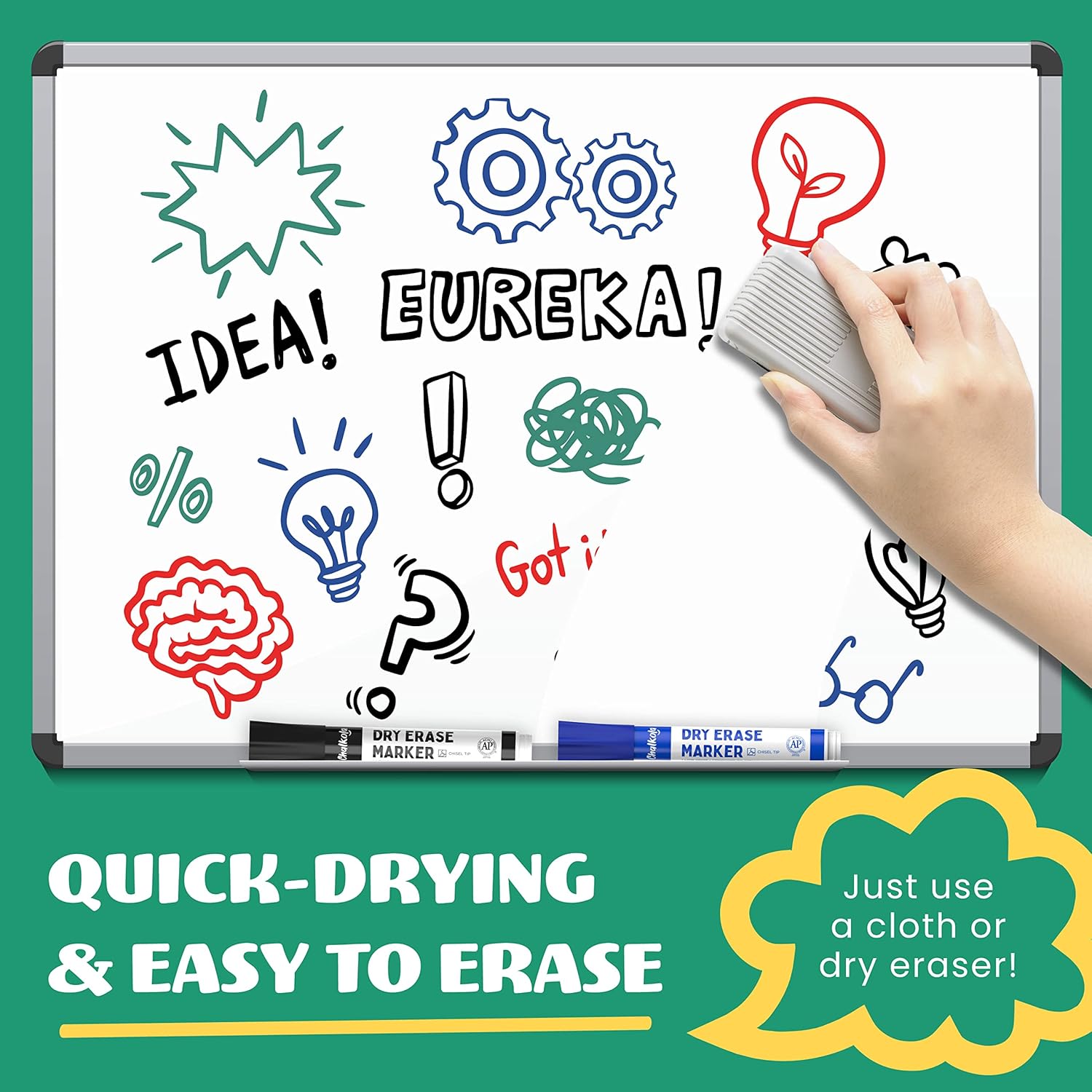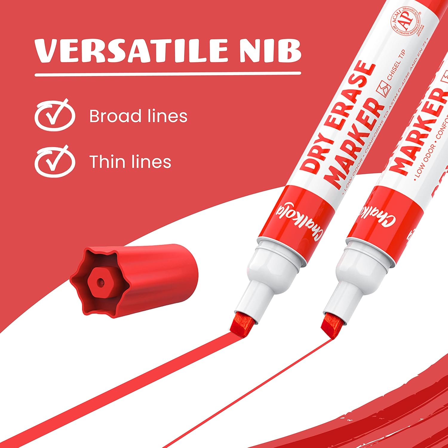 - Erasable Markers for Whiteboard - Dry Erase Marker set that dry quickly, erase quickly with any cloth or dry eraser. Dry erase markers chisel tip allows to produce thin or thick lines without any breaks, making them perfect for classrooms or conference rooms.
