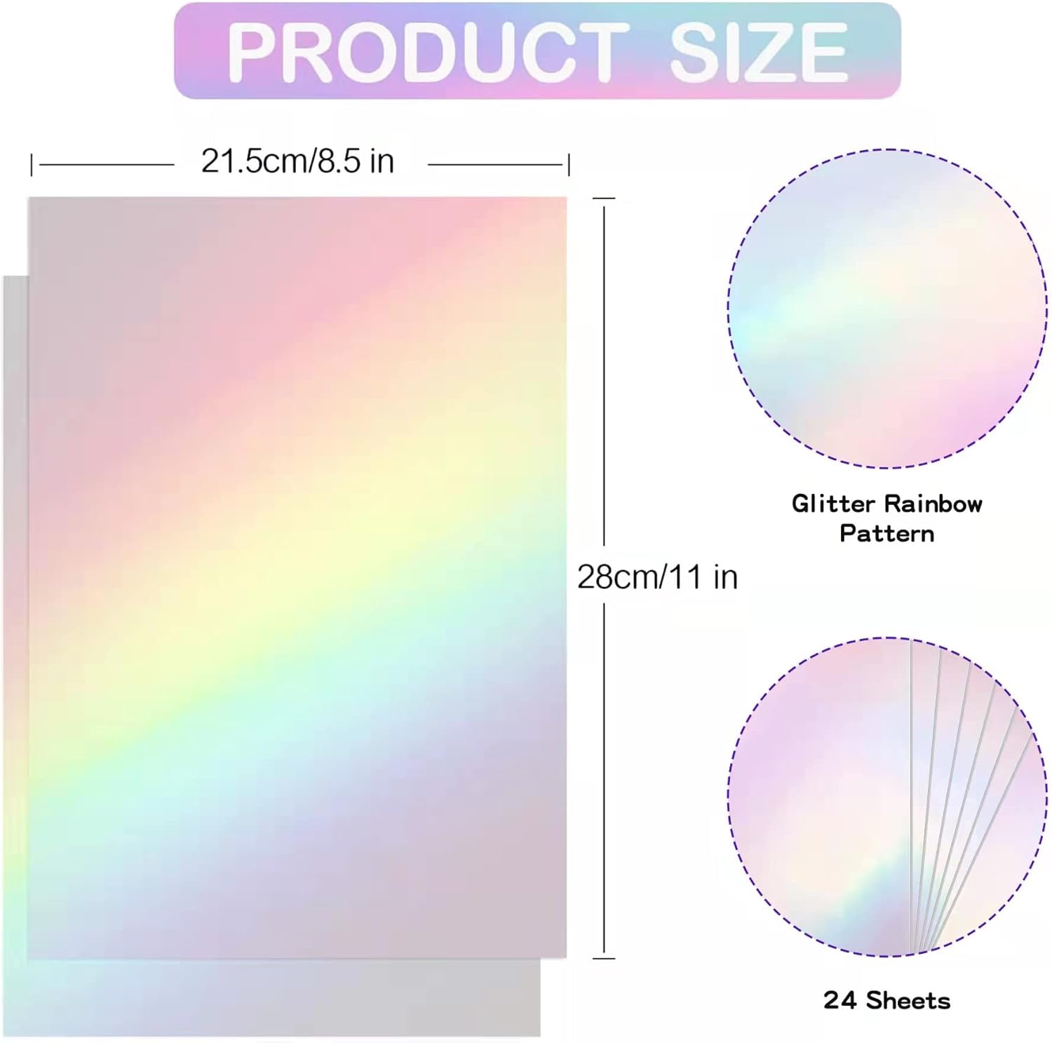 - Package Includes: You will receive 24 sheets of holographic laminate sheets, in the size of 8.5 x 11 inches, in the pattern of colorful laser, which are enough for applying in your DIY crafts projects to make your items more chic and shiny, enough for your daily use