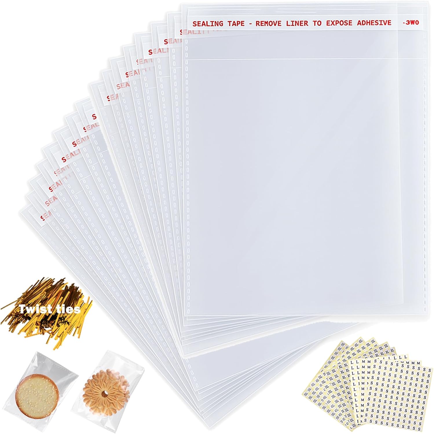 - Value Package: You will get a value package with 300 packs of 10 x 13 inches resealable cellophane bags, a bag of twist ties (800 pieces in total) and S to 5XL size stickers (one sheet each) in bulk quantity. What a great deal!