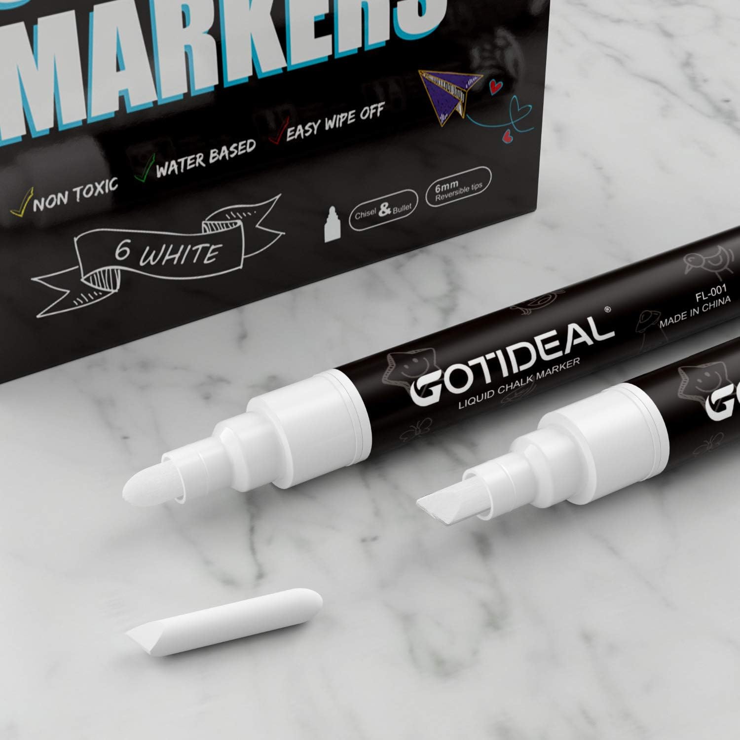 GOTIDEAL White Liquid Chalk Markers, 12 Pack Chalkboard Markers, Chalk Pens for Car Windows, Signs, Blackboard, Glass Painting, Erasable 6mm Reversible Chisel & Bullet Tip-…