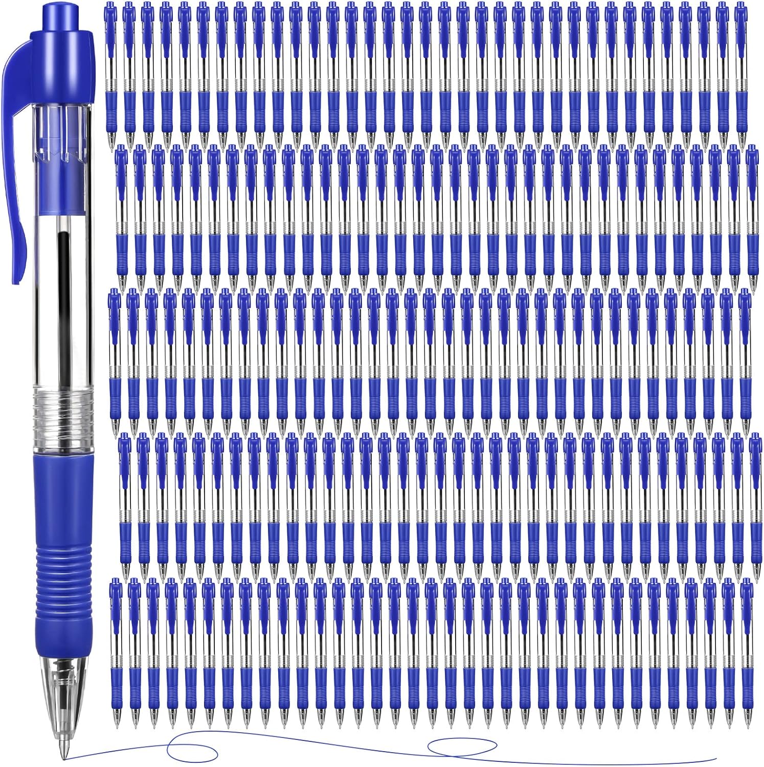 Fainne 200 Pack Retractable Ballpoint Pen 1.0 mm Medium Point Refillable Smooth Click Writing Pens With Grip for Work Journal Writing Office School Supplies(Blue Ink)