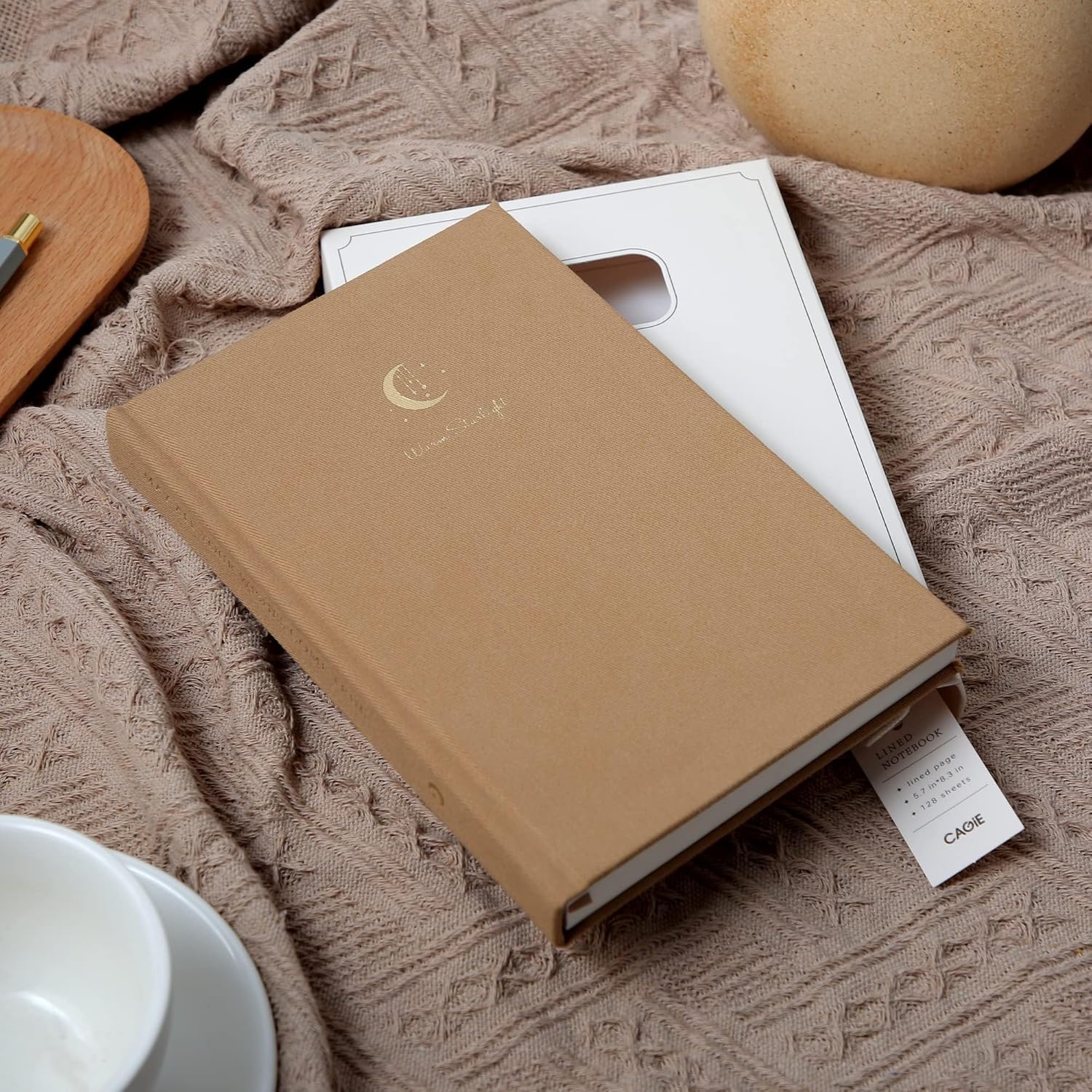 CAGIE Journal for Women Fabric Journal Notebook with 256 Pages 120 GSM Journals for Writing with Gift Box, 5.7x8.3 In, Brown