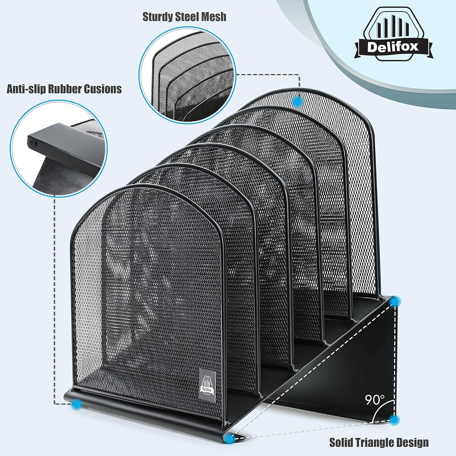 - ▶ SUFFICIENT SPACE FOR STORAGE. Delifox 5-compartment desktop file organizer is large enough to hold and classify many document or papers so as to eliminate worry of document run-off and keep track of files, folders, and other important papers