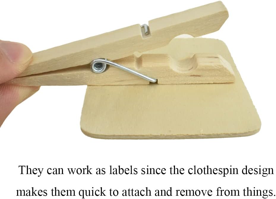 - Clipping design:You can use these in crafting,they also useful in the process of redoing the kitchen and the garage and use these to separate out what you have in the garage.They can work as labels since the clothespin design makes them quick to attach and remove from things.Sturdy enough that they don't feel loose.