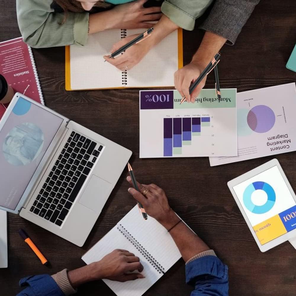 12 PCS 2 in 1 Stylus Ballpoint Pen with Stylus Tip, 1.0 mm Black Ink Metal Pen Stylus Pen for Touch Screens (Rose Gold & Purple)