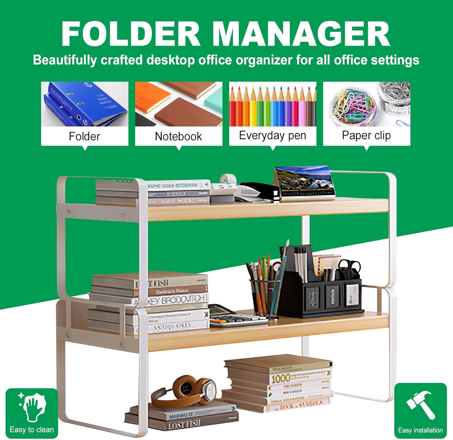 - 3.Fine workmanship and more beautiful: Your office desk shelf organizer and accessories is cut surface of the plate is flat without hurt your hands, especially for the hollow part. the joint of the plate fits, the error is only about 0.1mm, and this office desk shelf organizer and accessories uses a side baffle and hollow design makes the desktop shelf lighter without affecting the practicability, and give you better visual effects, and more beautiful in the office and home