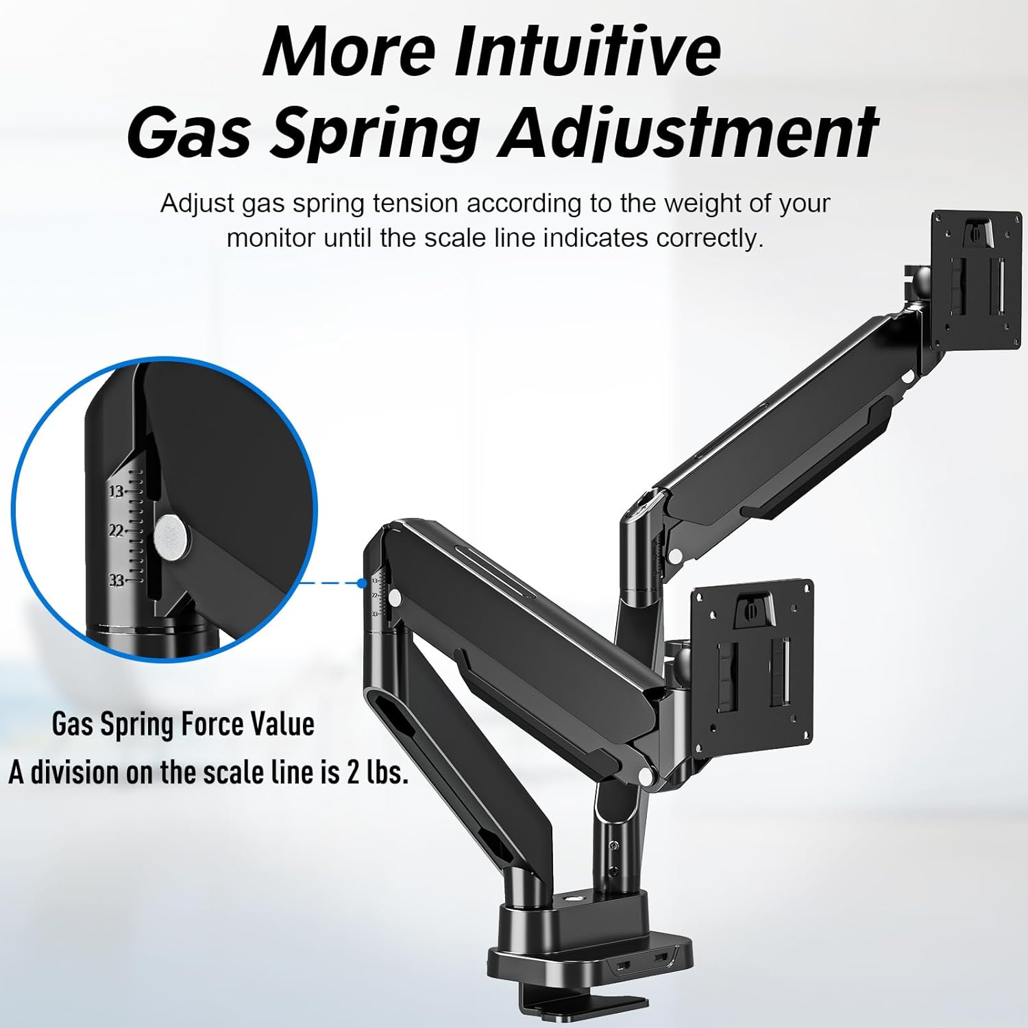 MOUNTUP Dual Monitor Mount Fits Max 39'' Screen, Ultrawide Dual Monitor Desk Mount Hold 4.4-33 lbs, Adjustable Gas Spring Double Monitor Arms, Computer Monitors Stand with USB, VESA Monitors Bracket