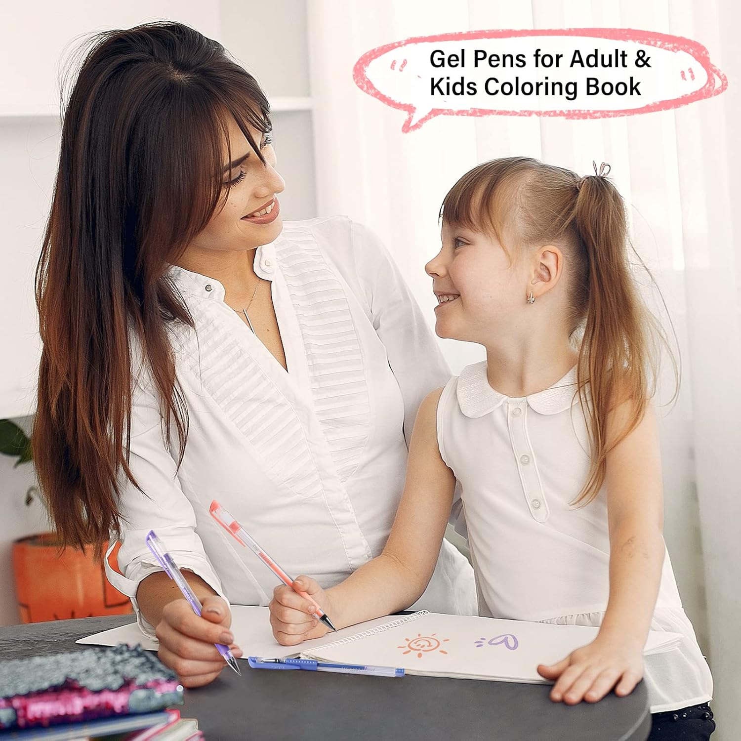 - Safe and Variety of Uses – This coloring gel pens are safe and non-toxic. And the gel pens set can be used in daily life or school work. They can not only used as color gel pens for adult coloring, but also color pens for Children Coloring Books, Scrapbooks, School Projects, Party invitations, Greeting Cards, Doodling, DIY decorating and letters.
