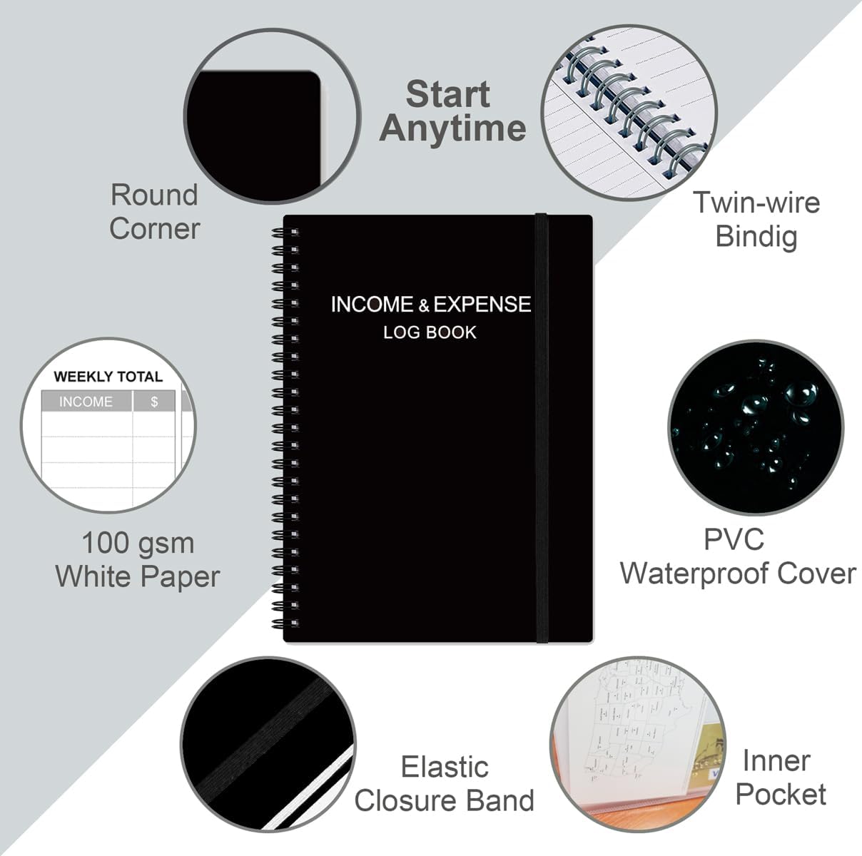 - UNIQUE DESIGN & A5 SIZE - Income and expense log book is spiral bound design, size of 5.8" x 8.3". Just the perfectly size to fit in your backpack, purse or laptop case. Without taking up your space and always helping you keep track of your small business