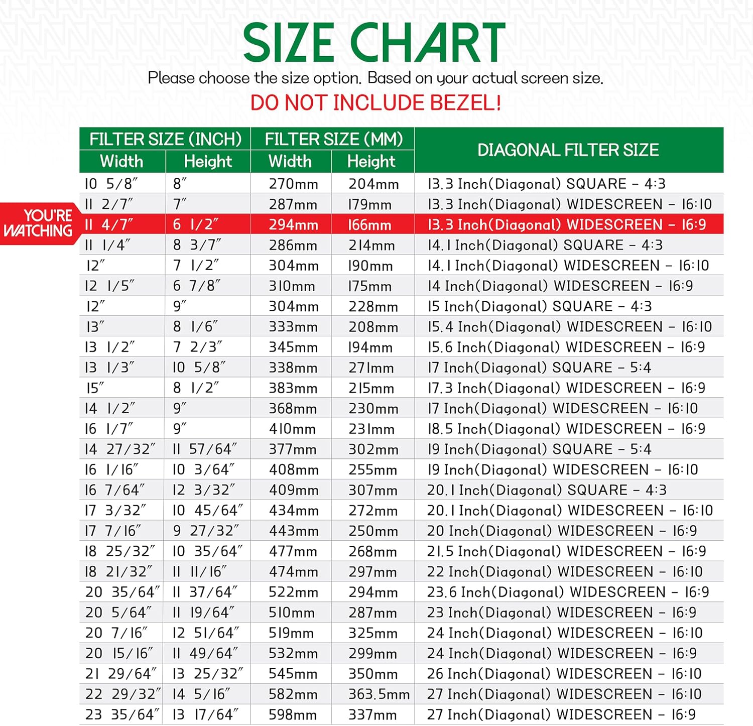 - ☘️ FILTER DIMENSIONS - Width: 11 4/7" (294 mm), Height: 6 1/2" (166 mm), Diagonal: 13.3"W9 ANBAC ATTACHMENT TYPE PRIVACY SCREEN FILTER is compatible with all major brands such as HP, Dell, Samsung, Lenovo, LG, Acer, ASUS, ViewSonic, and the others. Please check your screen's width and height measurement in order to purchase the right filter for your screen size. (We advise that you DO NOT DECIDE your order only based on your screen’s diagonal size).