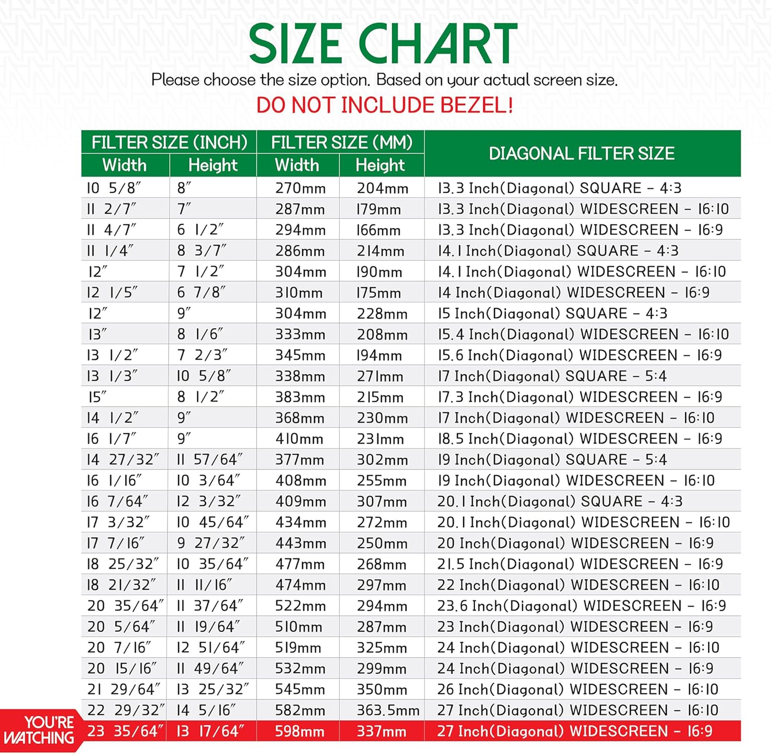 - ☘️ FILTER DIMENSIONS - Width: 23 35/64" (598 mm), Height: 13 17/64" (337 mm), Diagonal: 27"W9 ANBAC ATTACHMENT TYPE PRIVACY SCREEN FILTER is compatible with all major brands such as HP, Dell, Samsung, Lenovo, LG, Acer, ASUS, ViewSonic, and the others. Please check your screen's width and height measurement in order to purchase the right filter for your screen size. (We advise that you DO NOT DECIDE your order only based on your screen’s diagonal size).